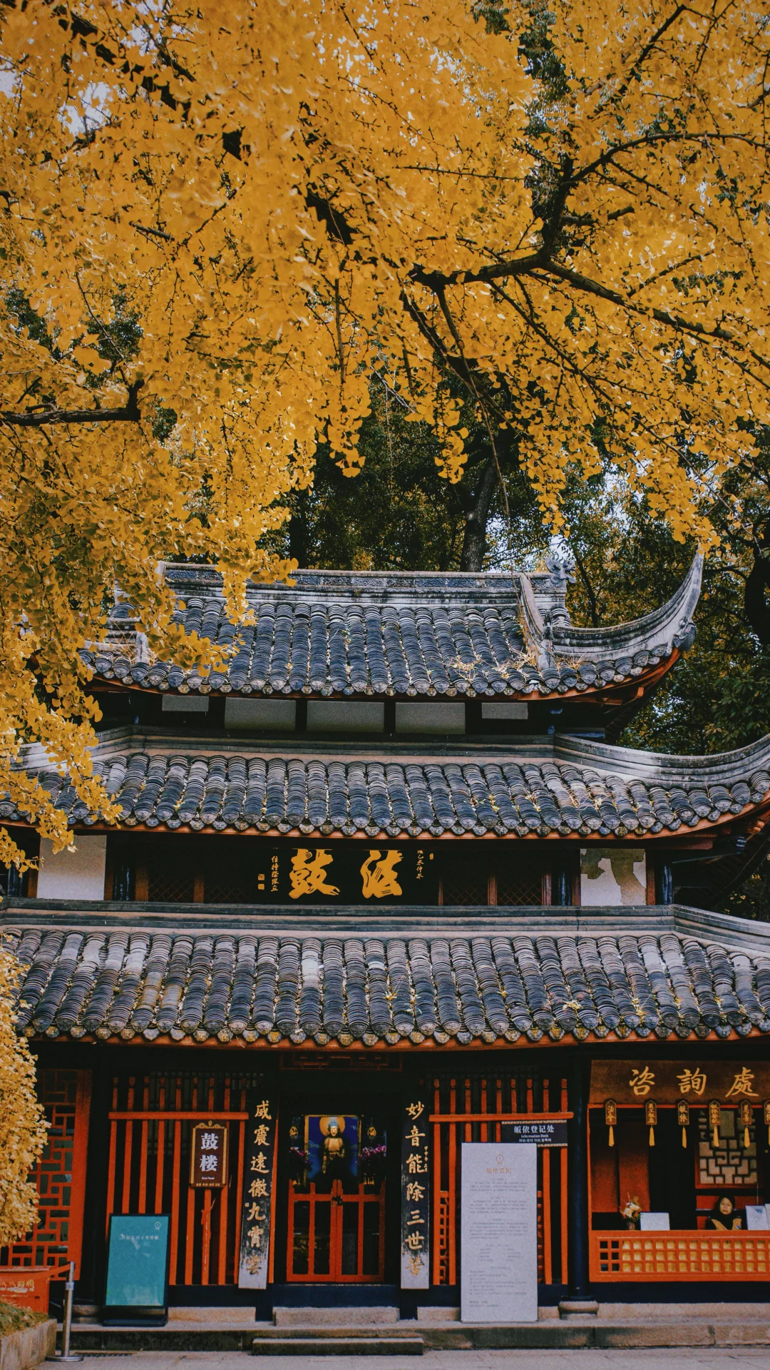 3️⃣寺庙的后院空林佛教图书馆,有一片银杏林很壮观