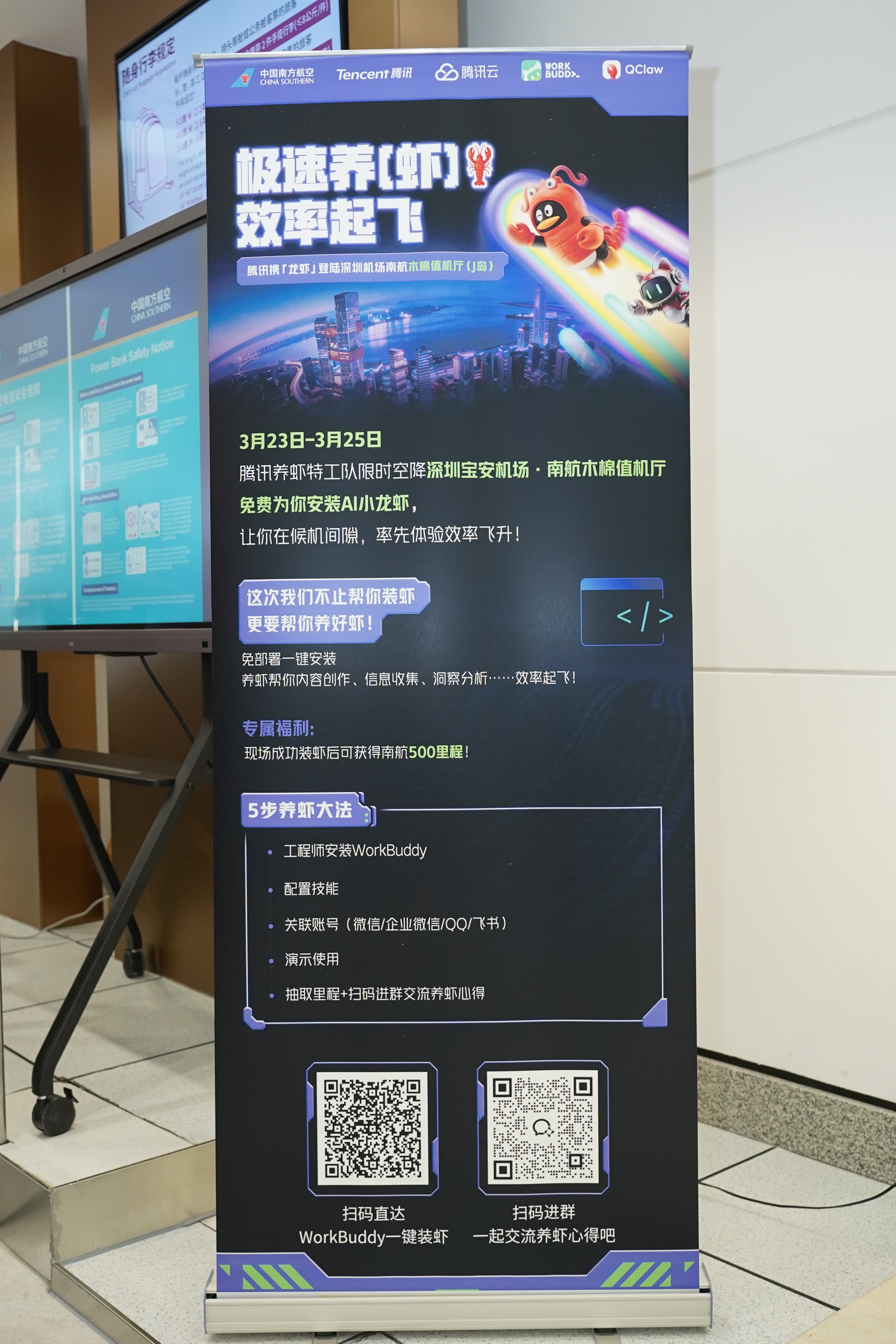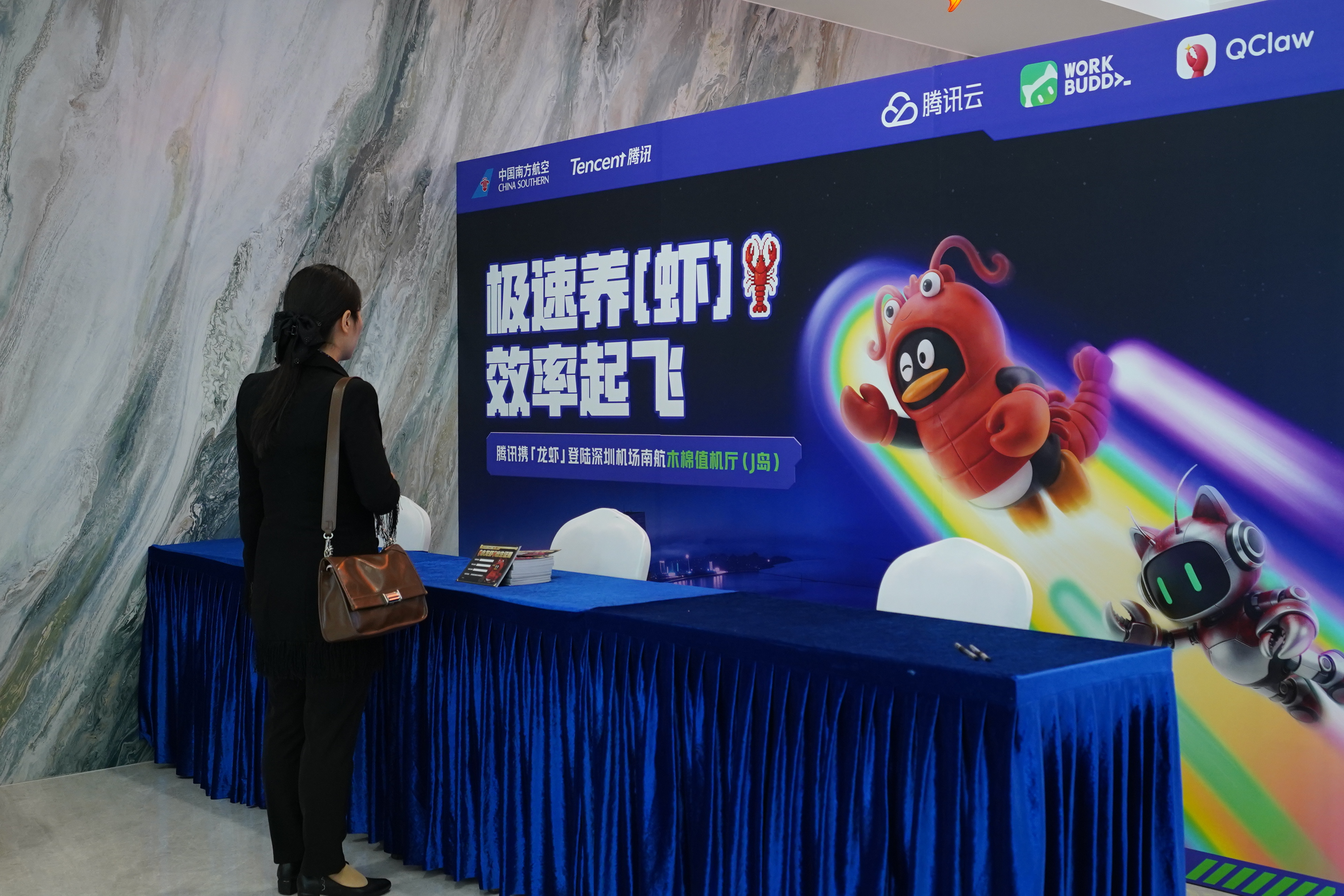 深圳机场候机厅变养虾场候机本来挺无聊,深圳机场南航木棉值机厅倒好,直接联合鹅厂,请工程师来教人装腾讯AI龙虾WorkBuddy,用微信就能直接链。排队等着也是等着,不如上手试试新玩意儿。有人笑说装上能省下时间专心去玩,这话在理。国内首个用上龙虾的候机厅