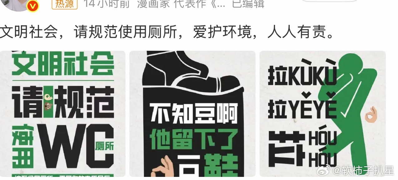 文明社会请规范使用厕所梓渝粉丝在此呼吁:爱护公共卫生,遵守如厕规范,保持环境整洁
