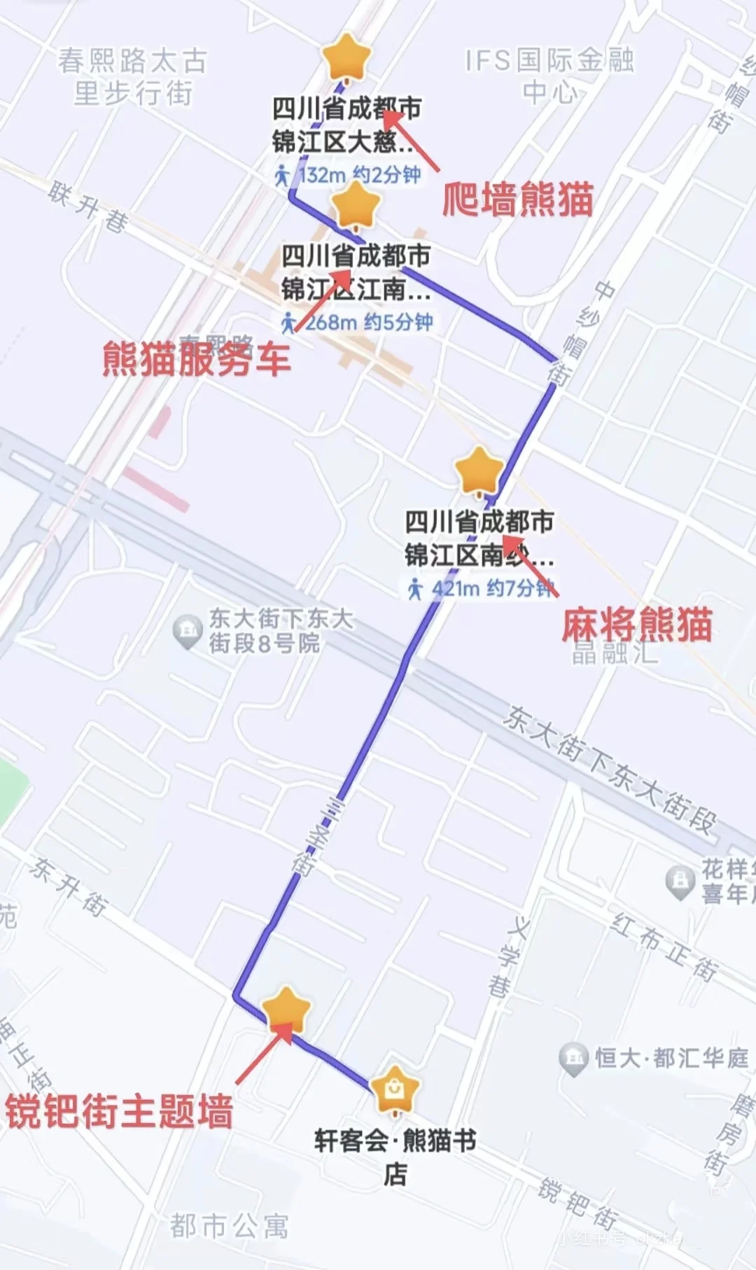 在市中心 ,都不远,也不绕,这条citywalk路线就能完整打卡超出片的熊猫机位