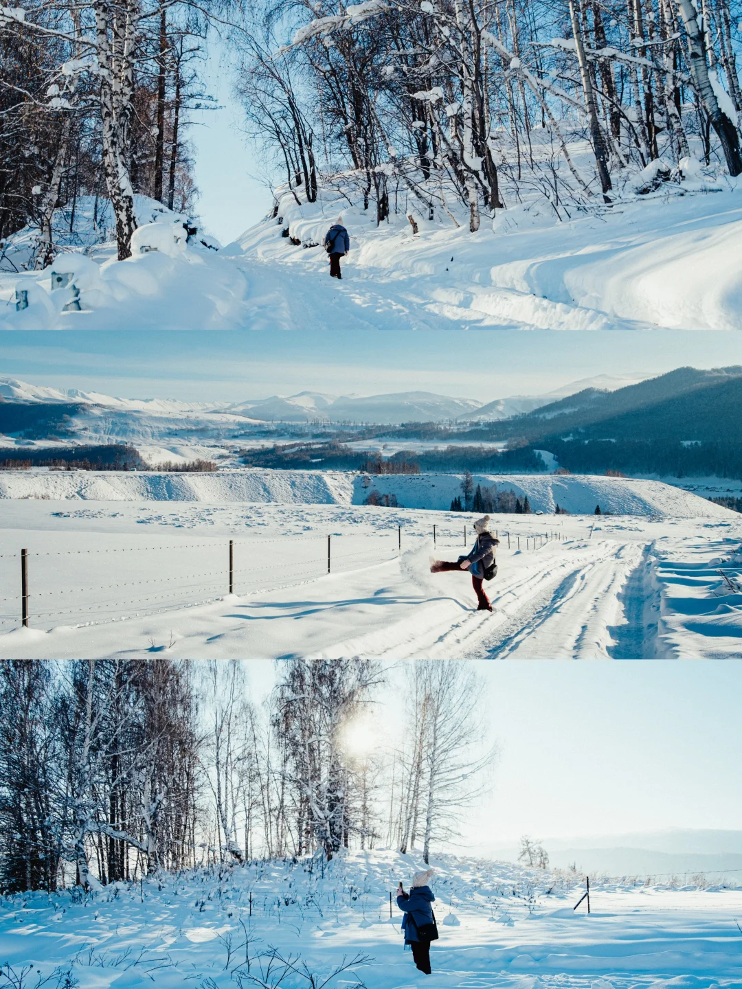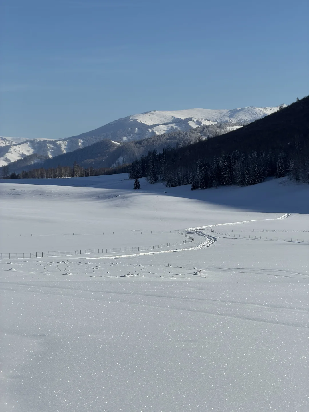 整个大山,感觉都属于我们俩,没有游客,没有喧嚣,雪都是没有被污染的,超级纯洁干净