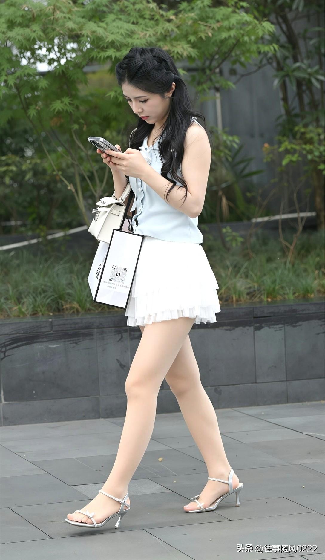 夏日穿搭指南:清爽蓝白连衣裙,搭配白色手提包,轻松出行