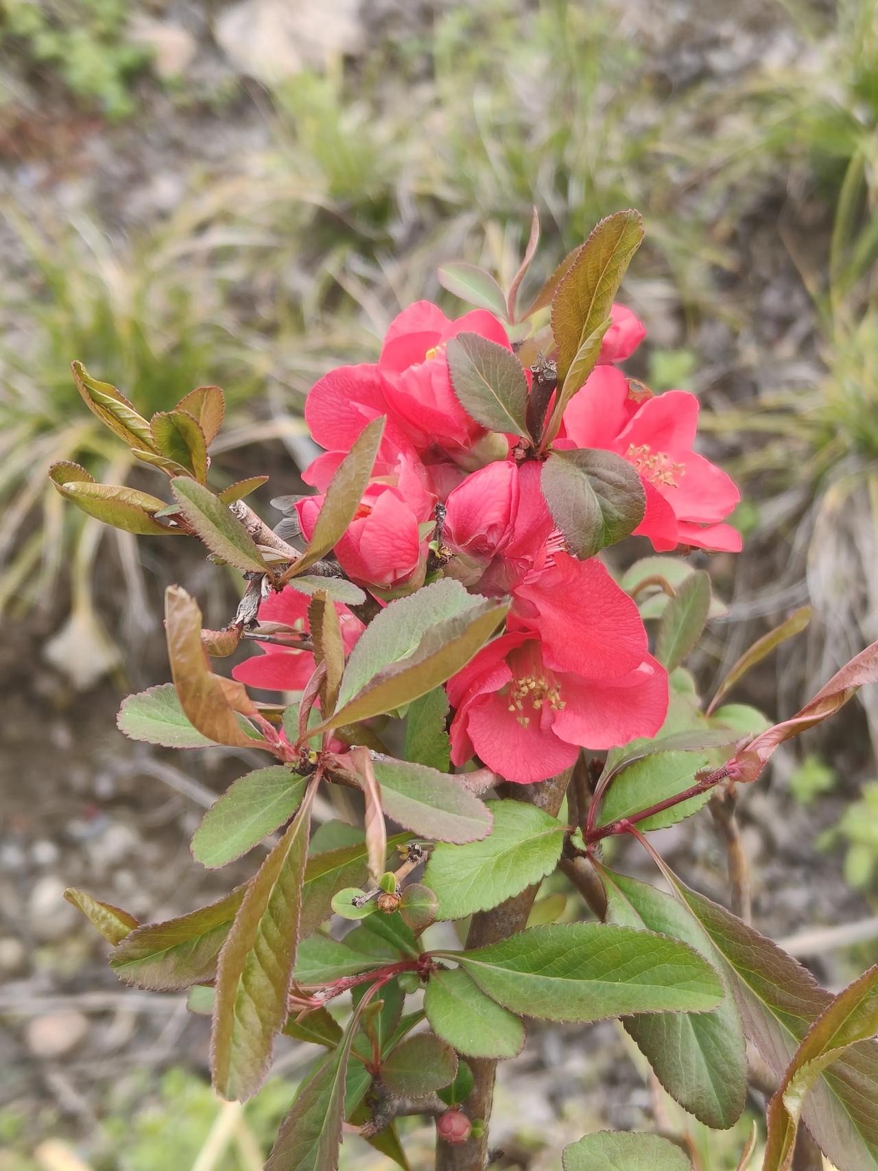 公园里樱花树下的贴梗海棠开得正好,就是隔着围栏没拍好…[捂脸]