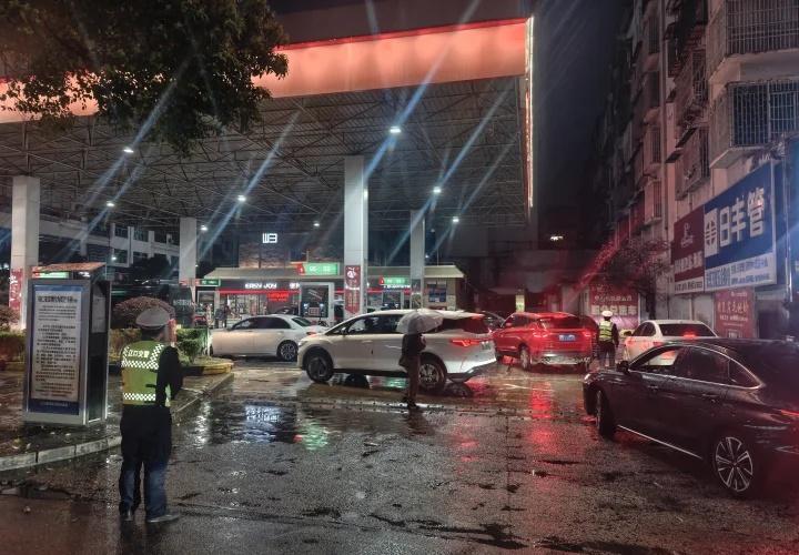 3月24日0时,国内成品油价格大幅上调,调价前夜,江口县城区各加油站迎来集中加油高峰,车辆扎堆排队、部分站点周边车流拥堵。为保障道路通行有序、群众出行安全,江口县公安局交管大队快速响应、主动作为,派出警力在城区各加油站及周边道路巡逻值守与秩序维护,直至当日凌晨,用坚守筑牢交通安全防线,全力疏导车流、规范排队秩序。