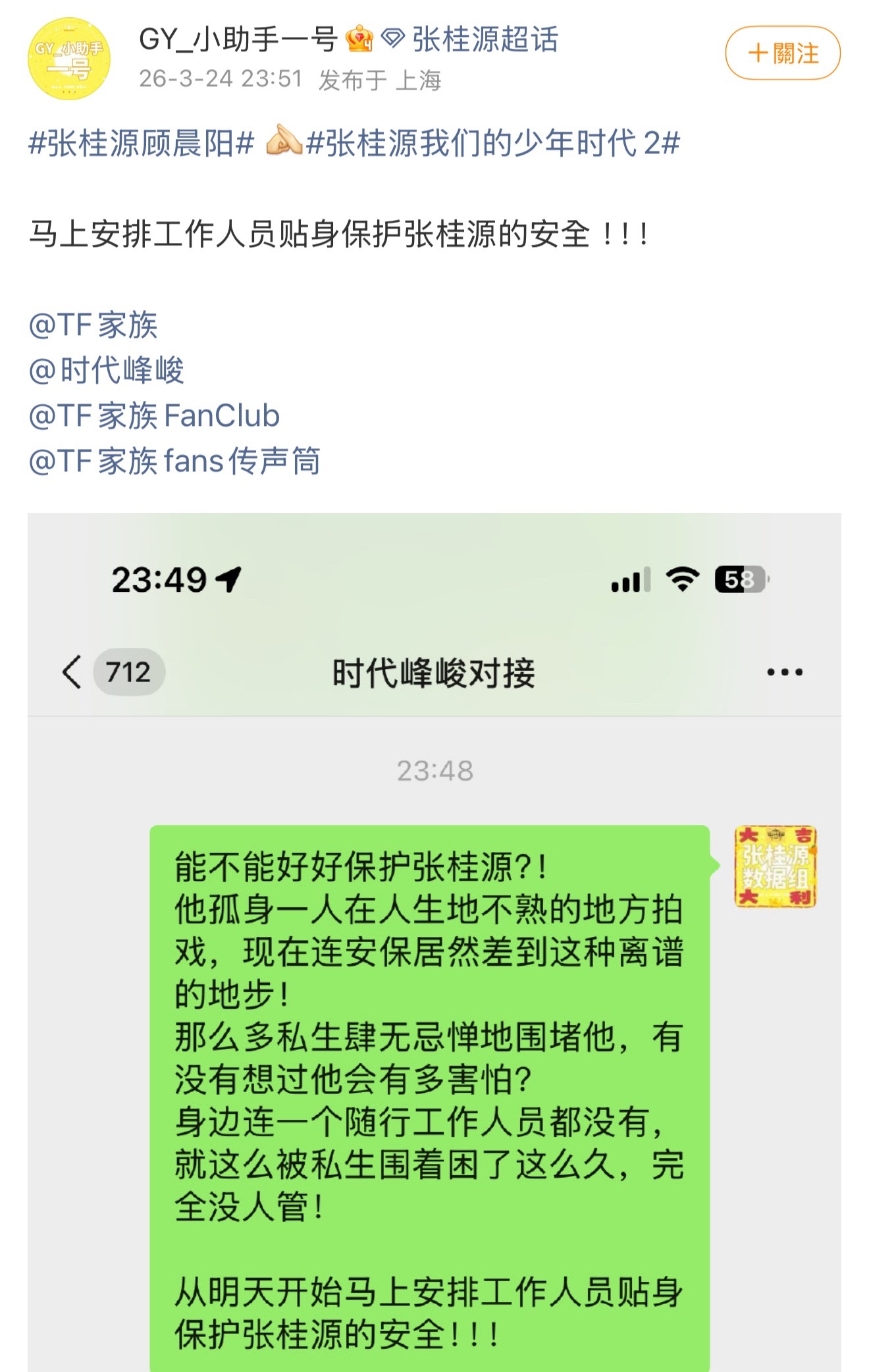 张桂源对接喊话时代峰峻 张桂源对接喊话时代峰峻,要求公司安排工作人员保护好张桂源
