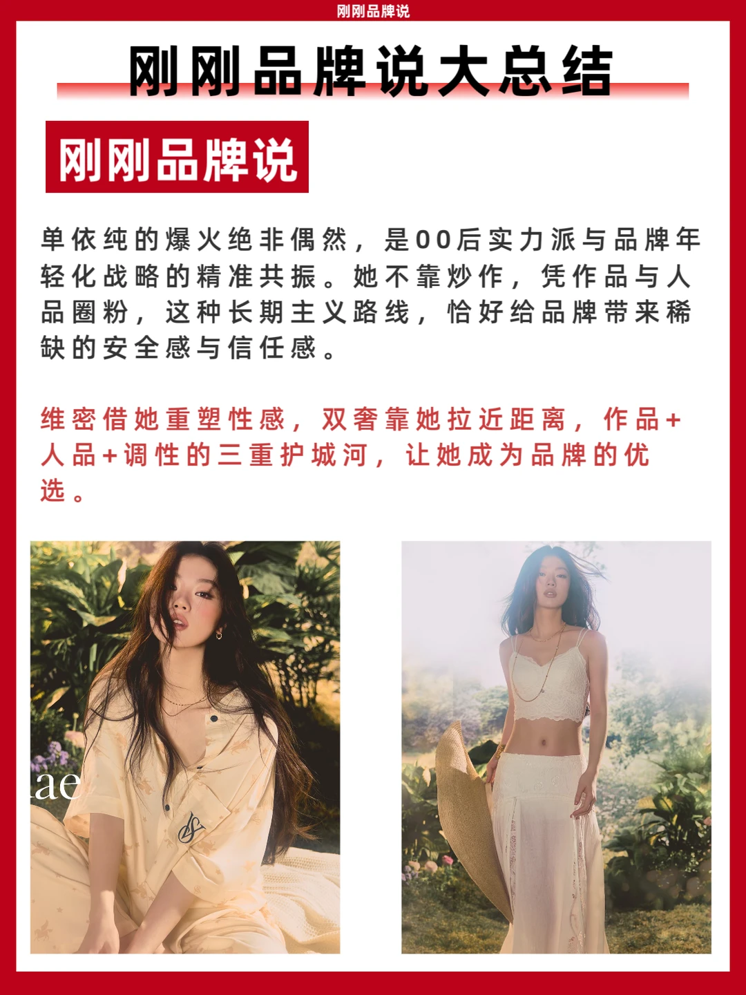 单依纯的爆火绝非偶然,是00后实力派与品牌年轻化战略的精准共振。她不靠炒作,凭作品与人品圈粉,这种长期主义路线,恰好给品牌带来稀缺的安全感与信任感。维密借她重塑性感,双奢靠她拉近距离,作品+人品+调性的三重护城河,让她成为品牌的优选。[吧唧R]