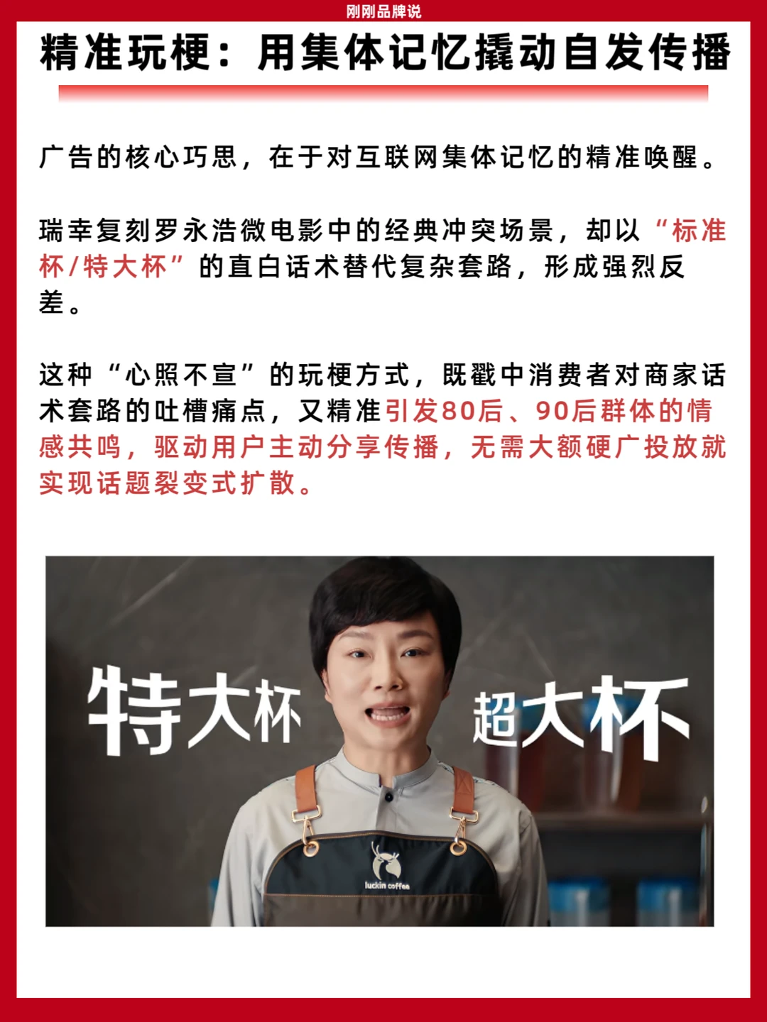 15年前,罗永浩因星巴克杯型话术“无能狂怒”的名场面,成为刻在互联网用户记忆里的经典梗;15年后,瑞幸将这个梗搬进广告片,让罗永浩以“被治愈者”的姿态,直面清晰直白的杯型选项。这场跨越时空的“call back”,不仅刷屏社交平台,更将瑞幸“不玩套路、透明消费”的品牌主张,潜移默化地植入用户心智,堪称低成本高收益的营销范本。