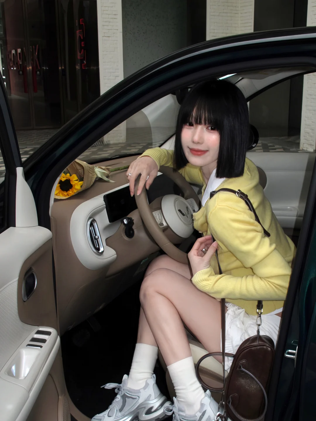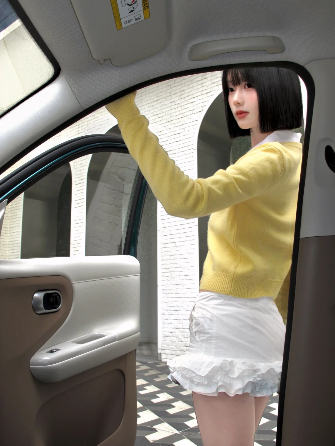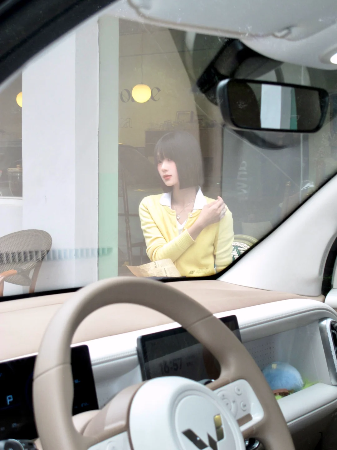 将浪漫的春光用车窗取景