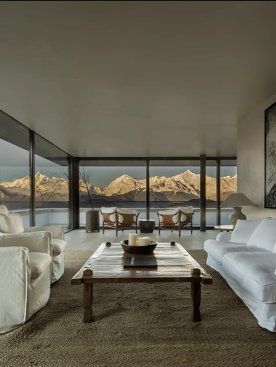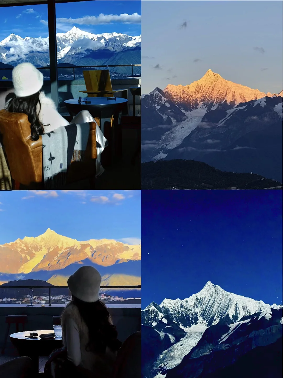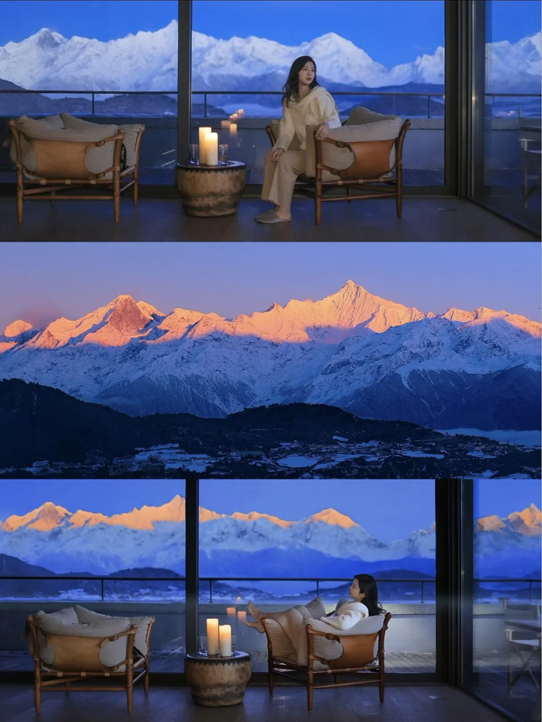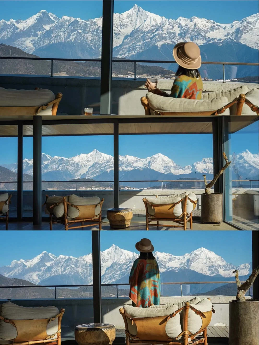 明星网红抢着来住的的全景雪山酒店,侘寂风非常出片📸,360°超.大落地窗正对雪山,看梅里十三峰在眼前一字排开十分震撼,4楼公区视野绝,但只有高价套房能躺看金山