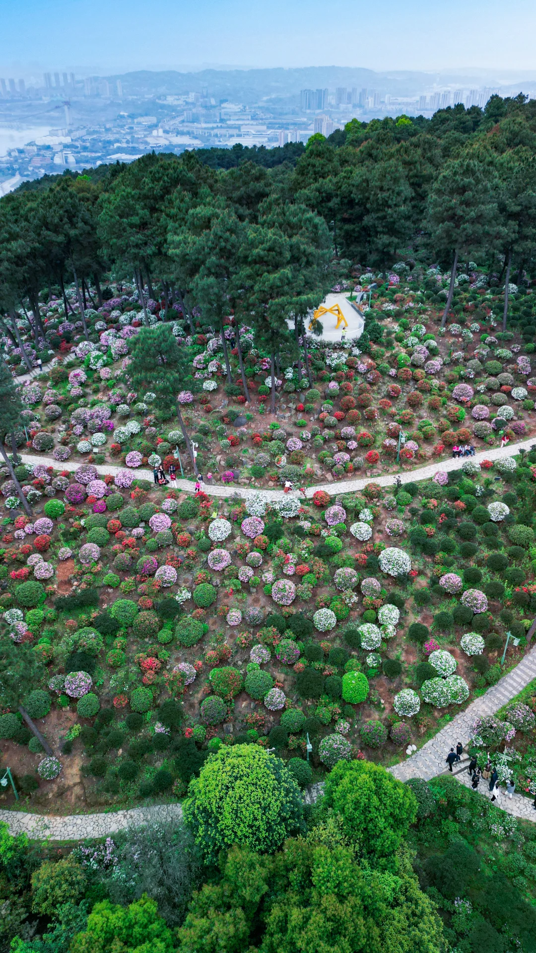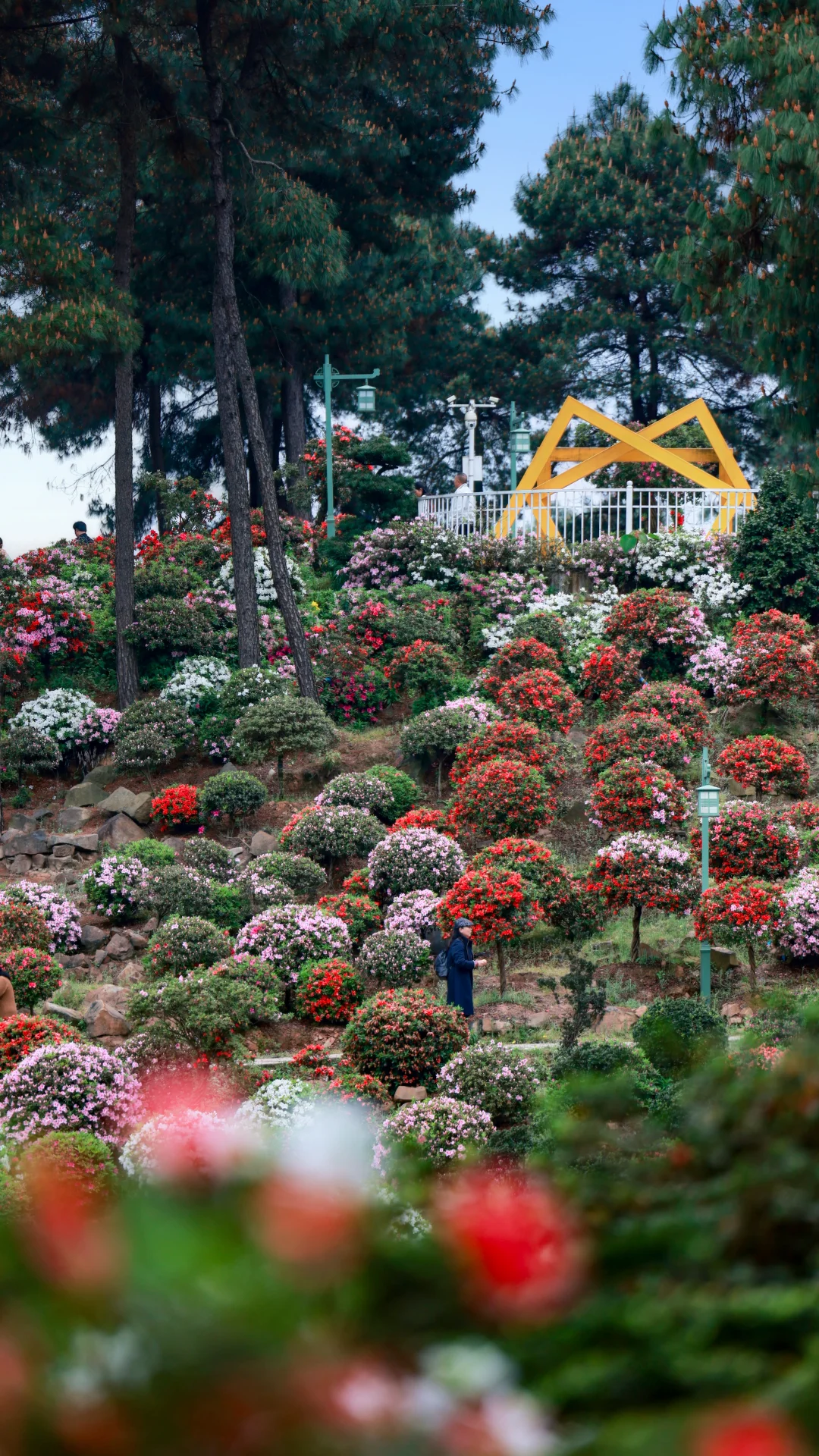 花海中有木栈道和观景台
