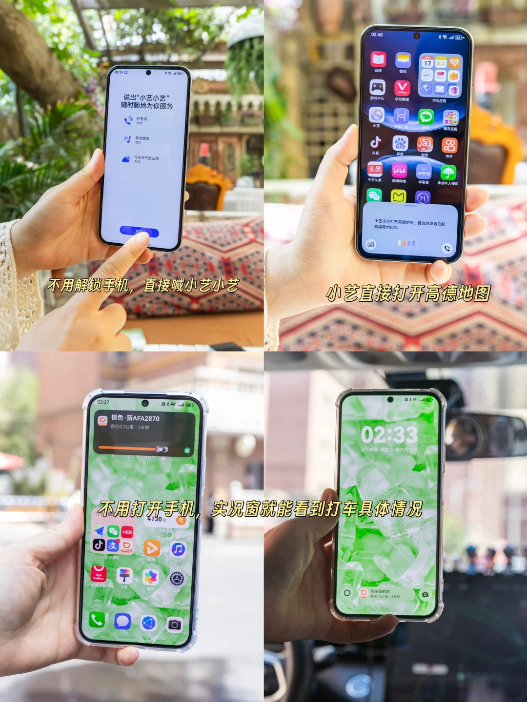 比如高德地图,喊一句小艺“我要去新疆大巴扎”就能打车,还有实况窗可以实时看行程状态