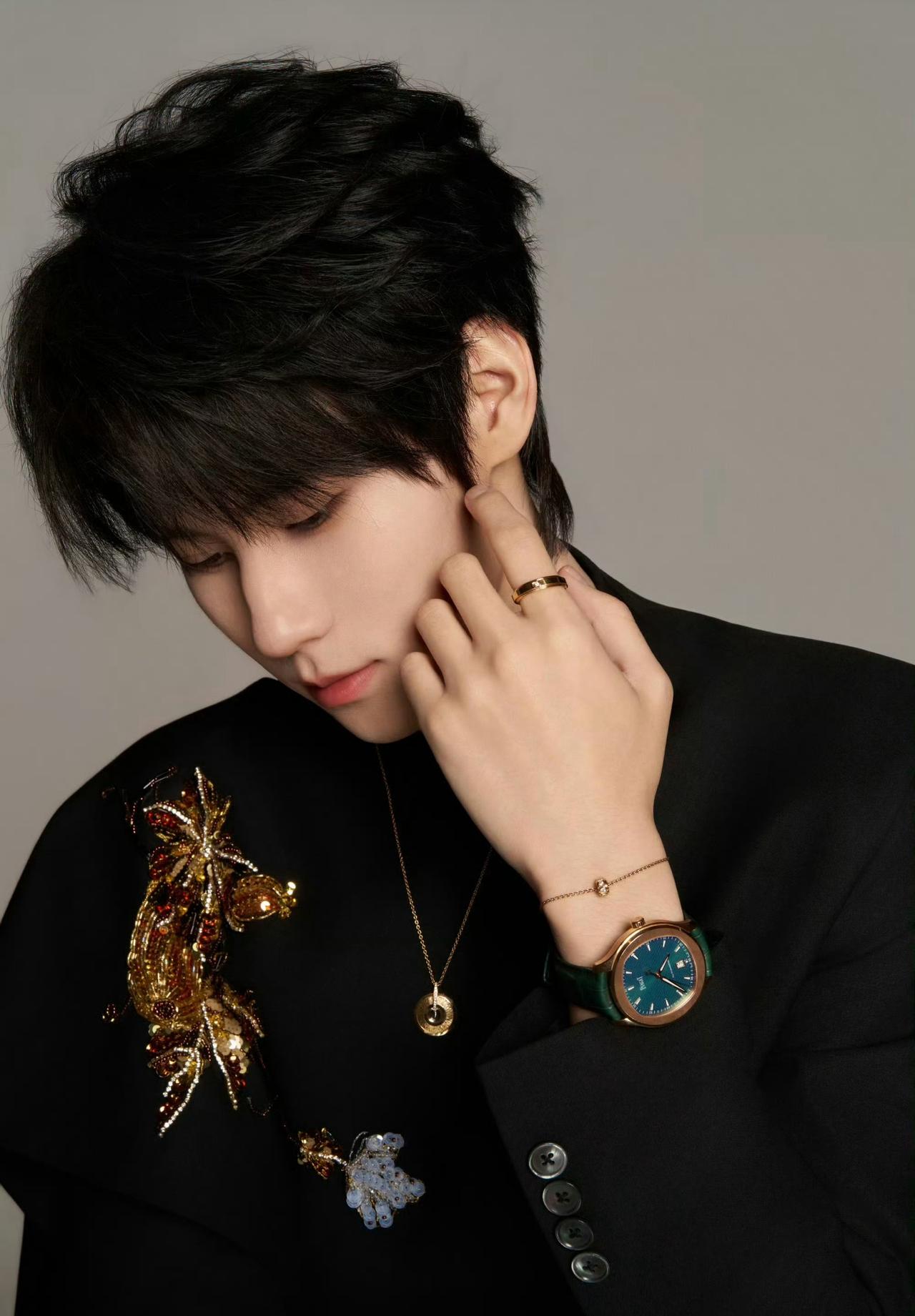 张真源 x PIAGET all black造型配高奢珠宝腕表,清冷高级贵公子具