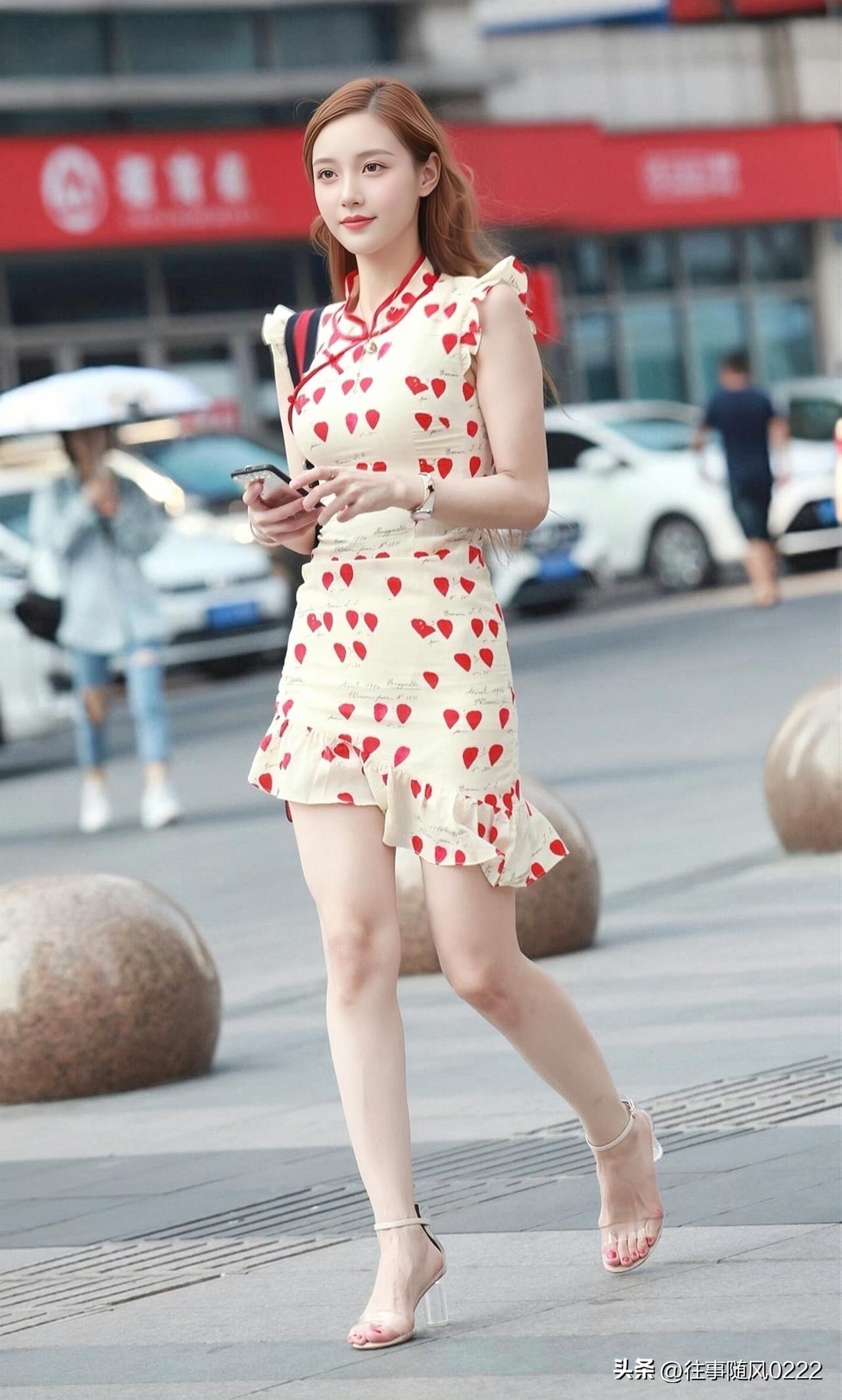 穿裙子可以搭配什么鞋?街头随拍|爱心旗袍+透明高跟,这才是夏天该有的样子!