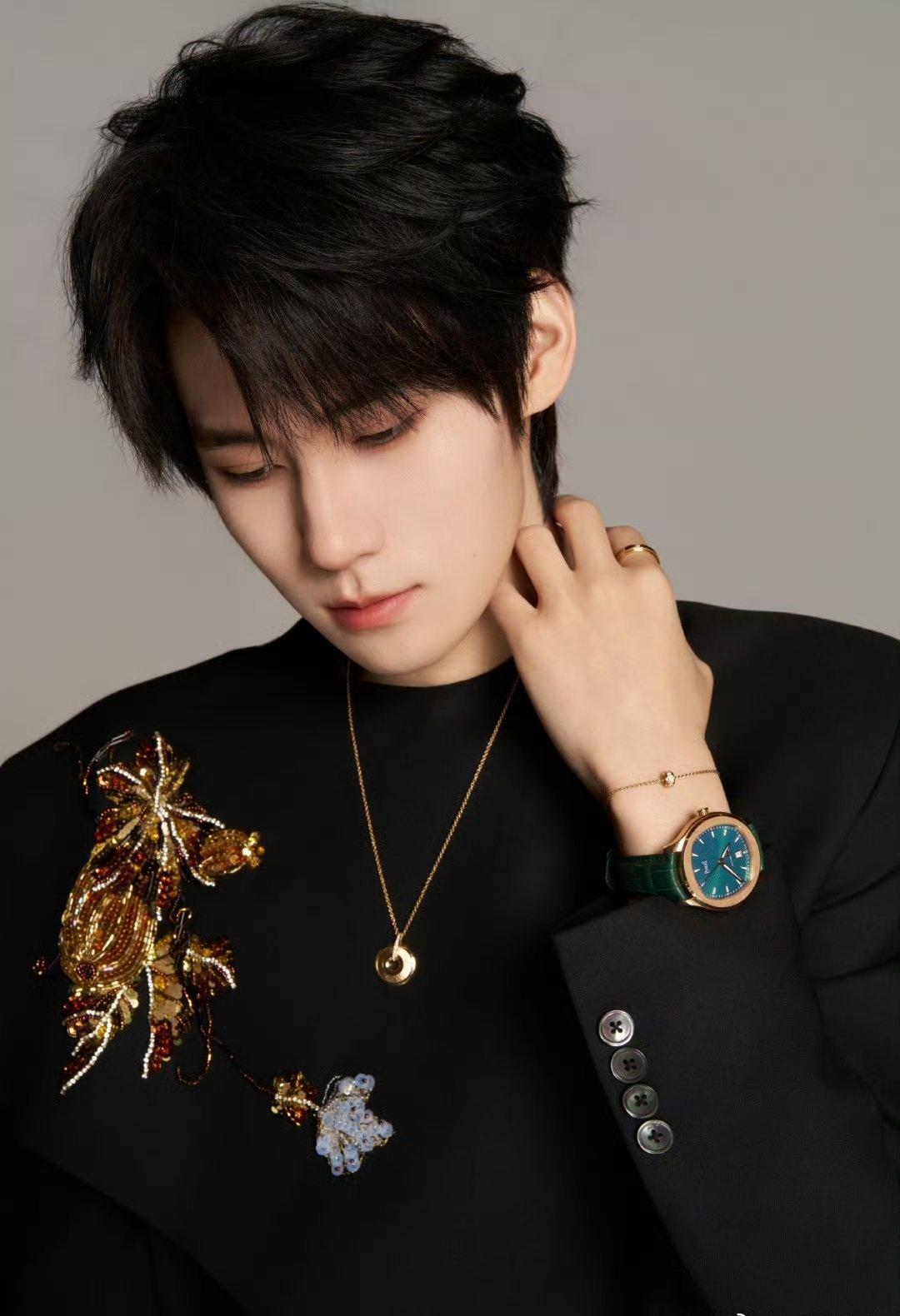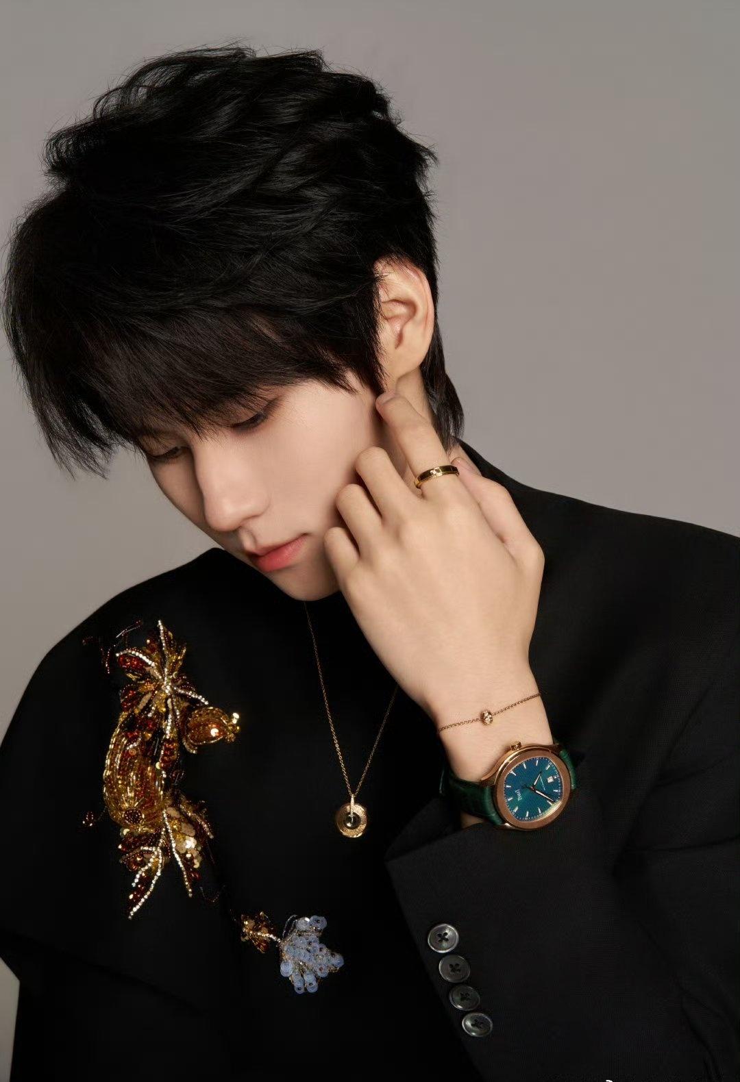 张真源✘PIAGET时尚大片更新📷 黑色新中式套装佩戴伯爵珠宝及腕表! 适配度
