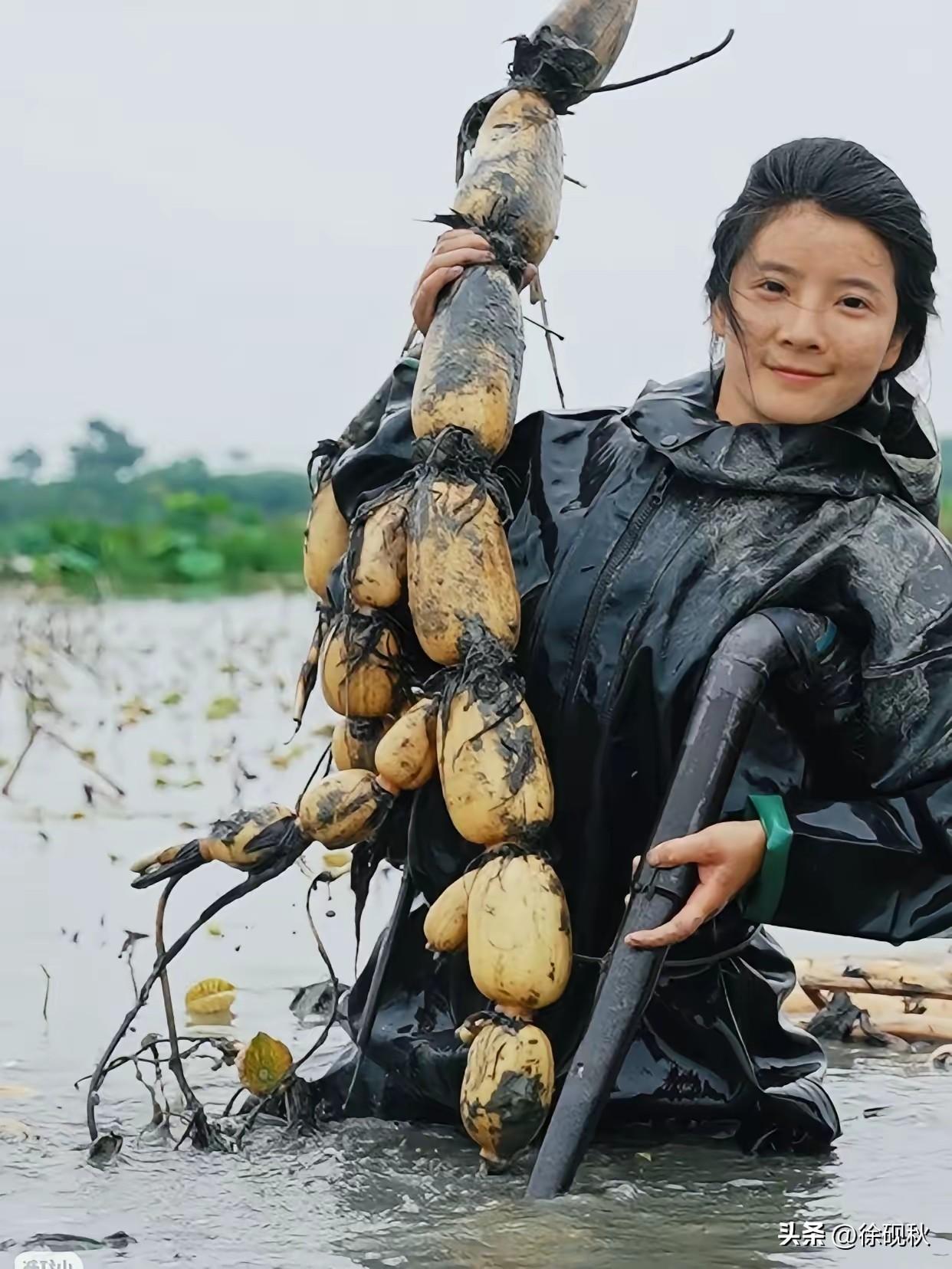 七绝·采藕 寒塘水深玉枝连, 满身泥香笑语传。 一杆秋实节节嫩, 美味佳肴香