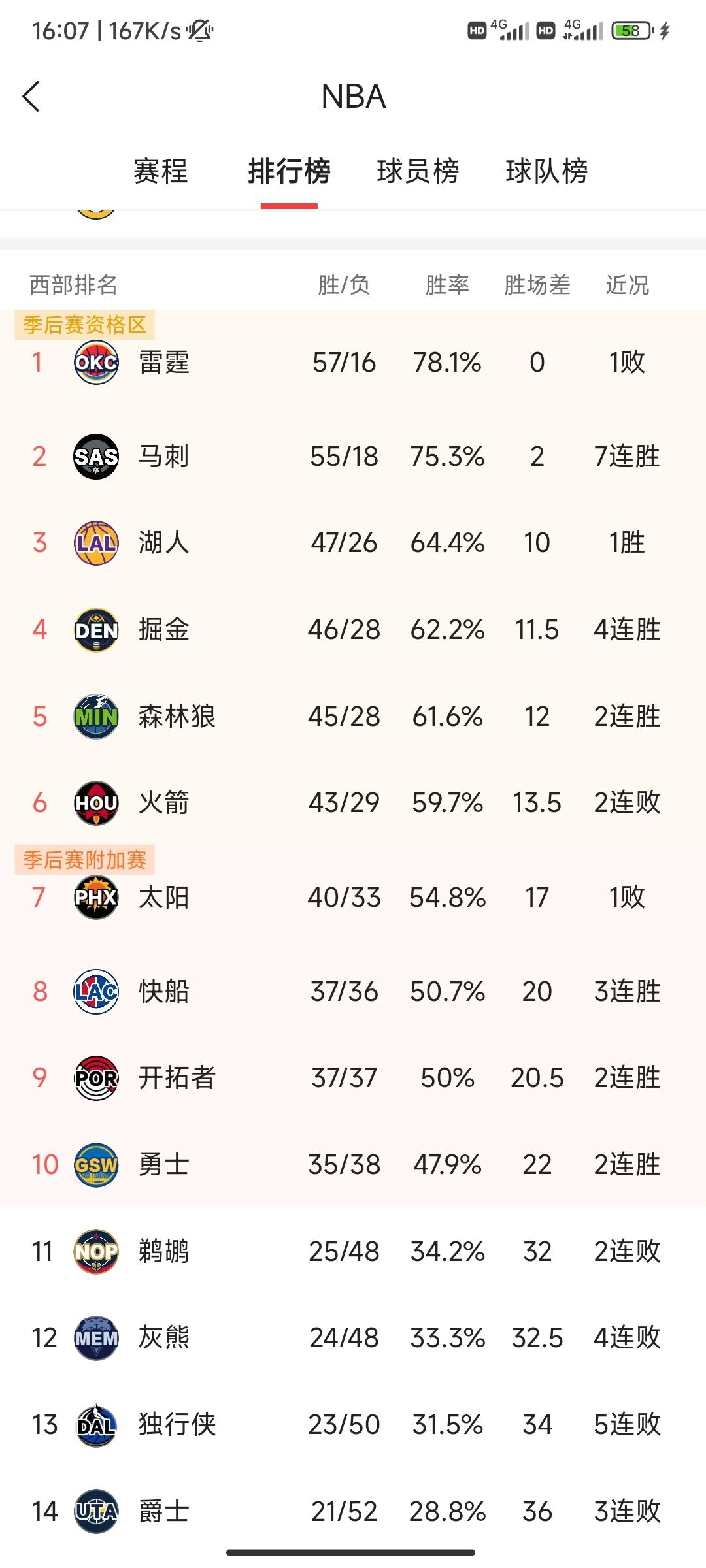 今天雷霆输给了绿凯,马刺战胜了灰熊。