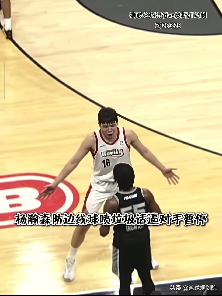杨瀚森在防对手发边线球时,不停的向对手喷垃圾话,并致使对手暂停。