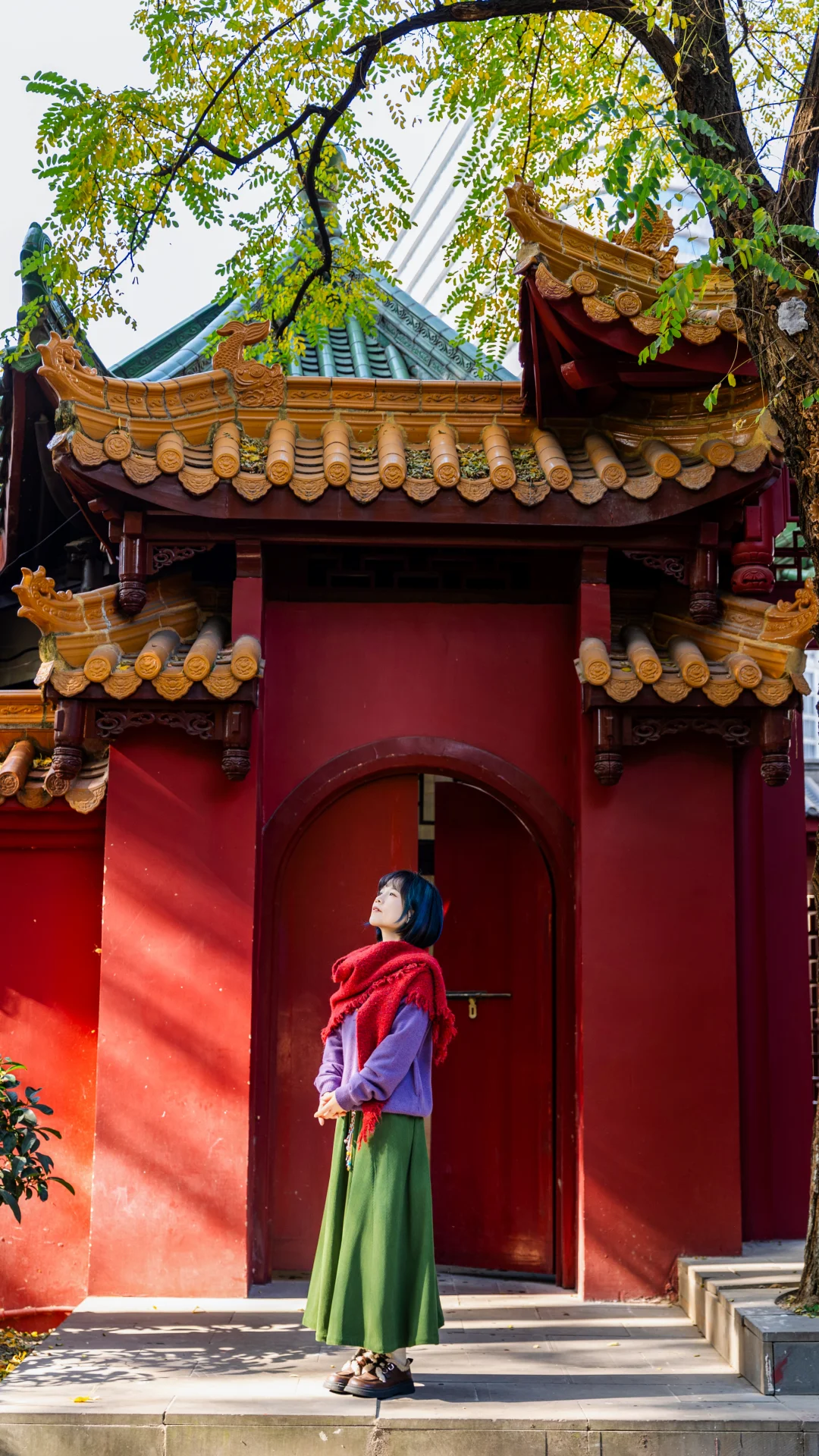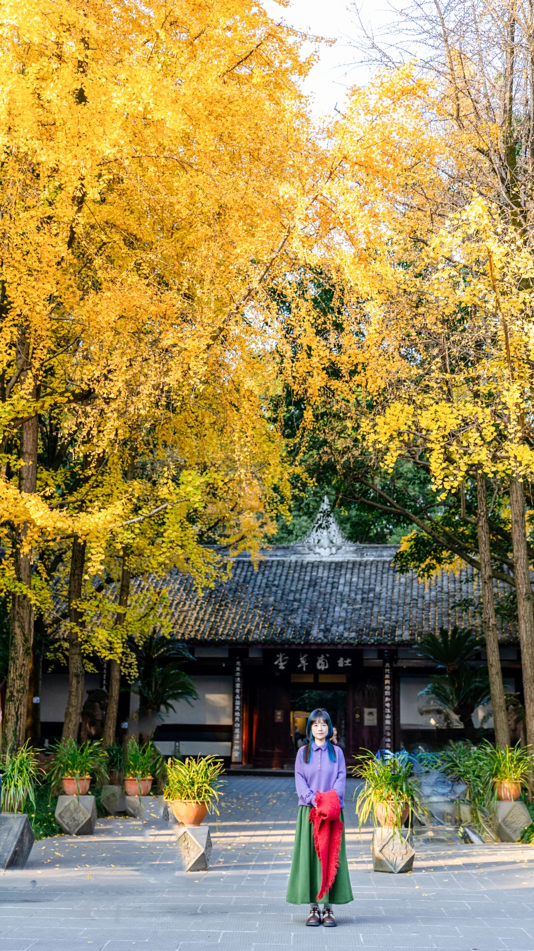 1️⃣杜甫草堂南门真的就是小故宫,红墙黛瓦配漫天金黄,随便往红墙边一站,出片就是那么简单