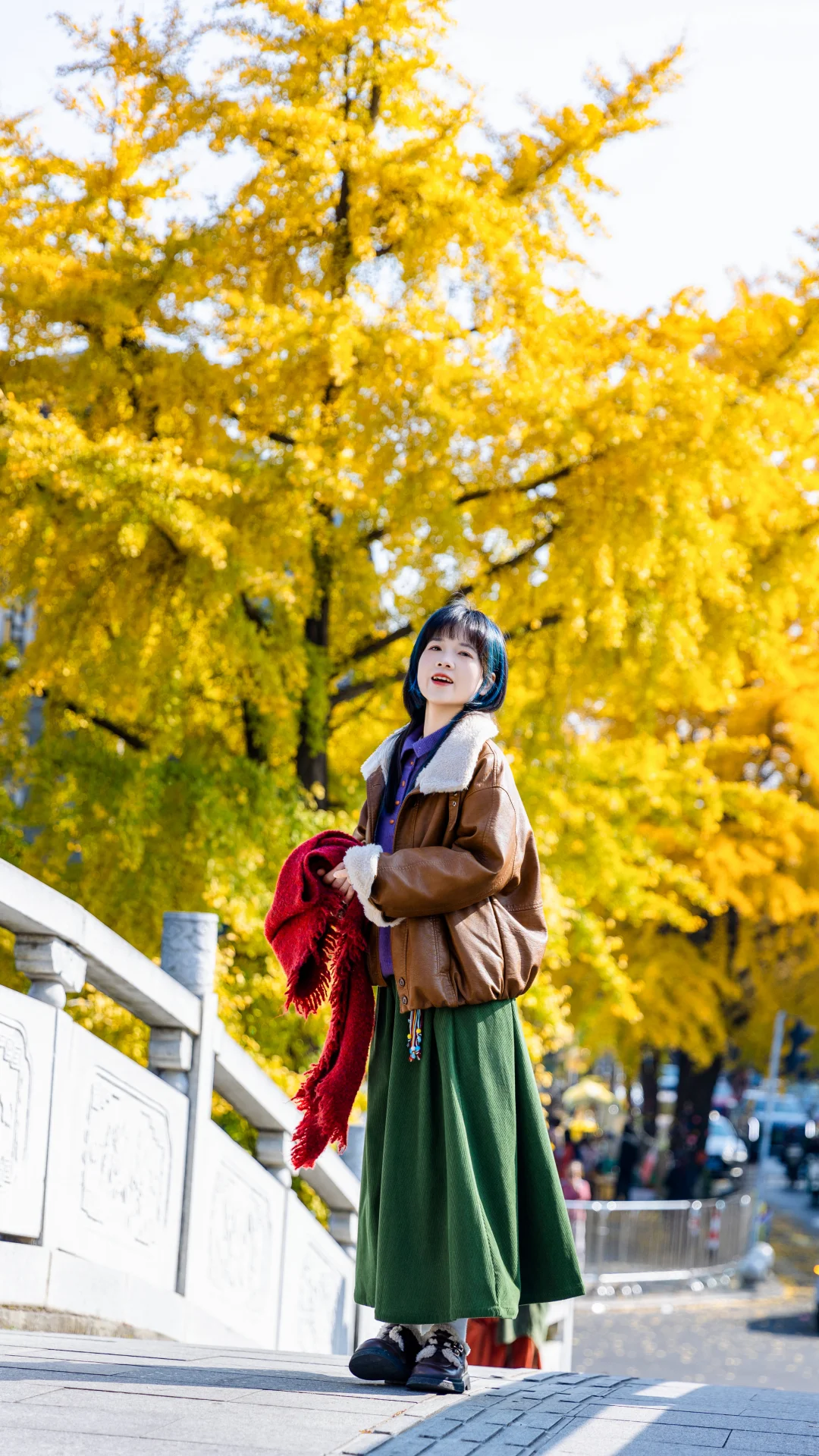 2️⃣出了南门就是草堂东路,两排银杏树搭成金色隧道也太绝了!河边还有两座青石小拱桥,背后满树金黄当背景,路边还有银杏主题集市,各种银杏小道具拍照超可爱,随手拍都是氛围感街拍~