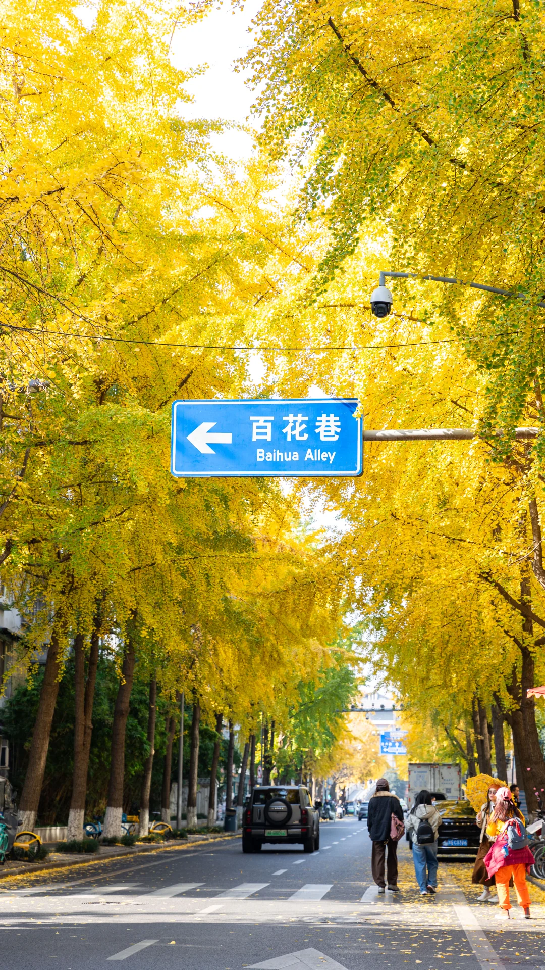 3️⃣ 顺着草堂东路往前走就是百花西路,这儿的银杏更安静,路边既有老茶馆也有咖啡小店,偶尔有骑行的人穿过树影,妥妥的老成都慢生活!累了就找家茶馆坐下,边喝盖碗茶边看落叶,也太惬意了吧~