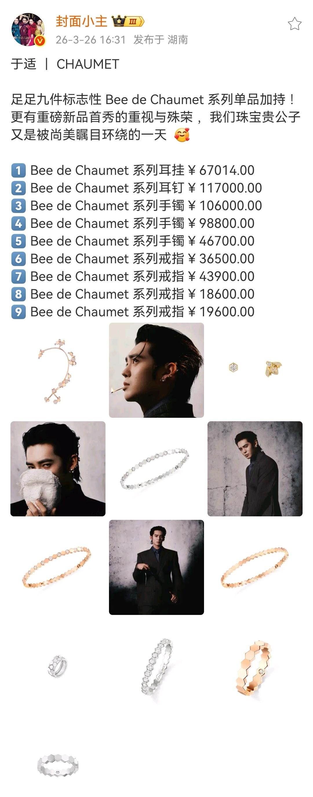 作为首位登封港版 GQ 封面的内地面孔+港版GQ首次评选MOTY年度人物,智族GQ +GQ Hong Kong+vogue wellness+vogue man 封面人物,@于适Yosh 于适受邀出席VOGUE & GQ Hongkong 盛典,尚美巴黎全套珠宝戴满,带来尚美全新推出的 CHAUMET Bee de Chaumet 耳挂全球首戴演绎 💎不愧是时尚宠儿