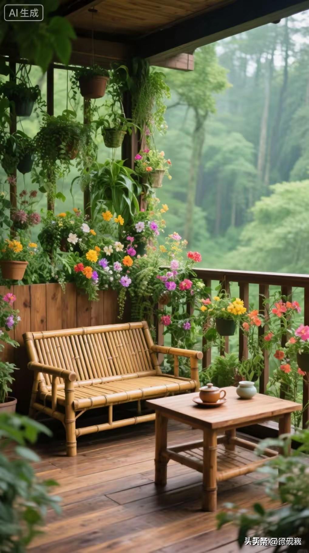 庭院独坐赏晨光 春色满园花自芳 清茶一盏寻诗情 满目美景著华章