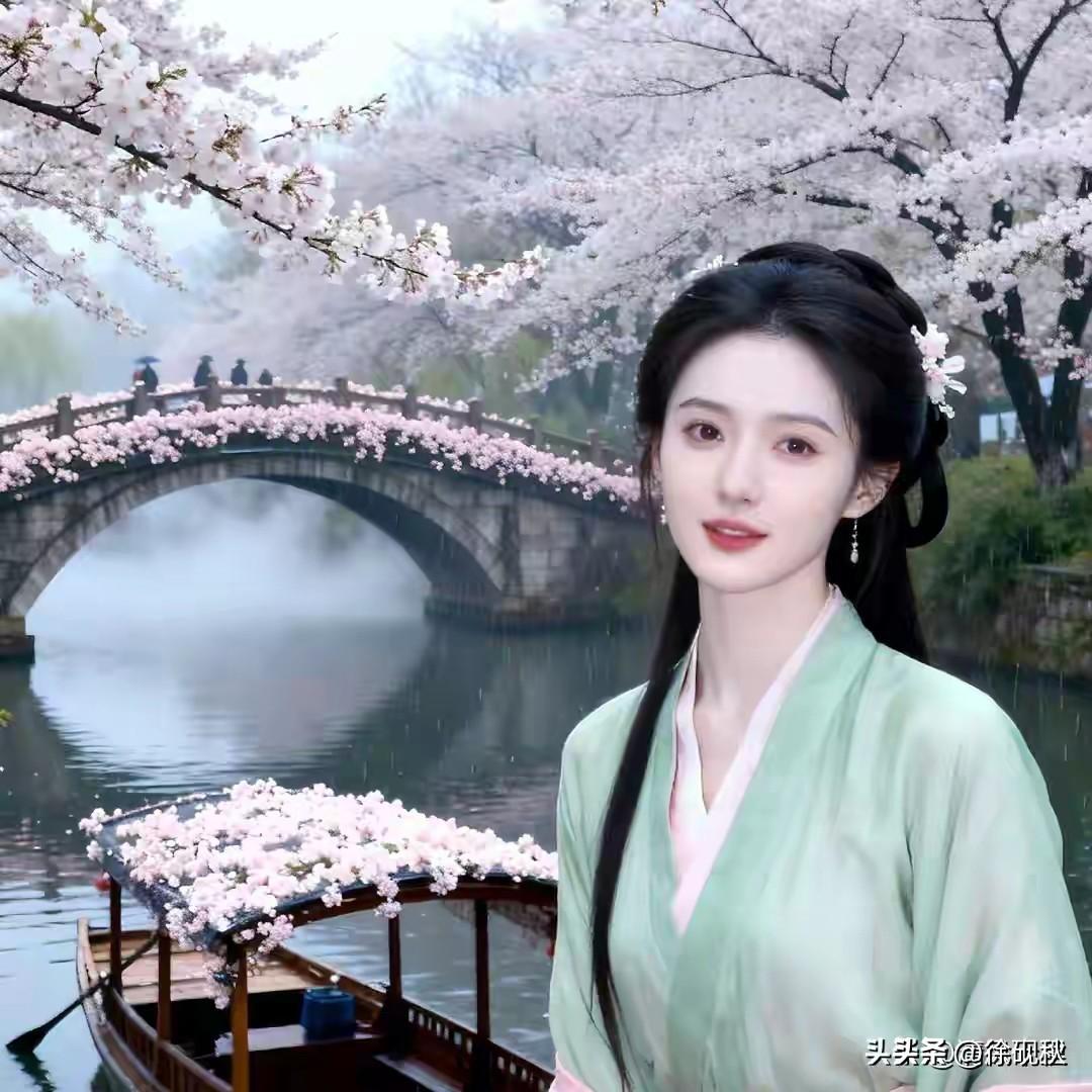 清风续句诗: 青山绕处春意悠, 巷里孩童戏未休。 海棠铺桥烟雨过, 一叶扁舟順水