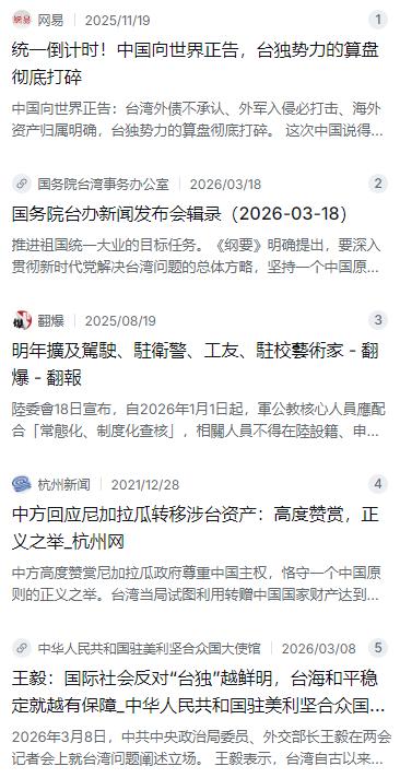 不管是清算债务、清除外部军事存在,还是接管海外资产,这三板斧下来,实际上是把“台独”的路给堵死了,也把外部势力干预的路给切断了。王毅外长今年3月刚刚又强调过,台湾自古以来就是中国领土,一系列国际法律文件早就把台湾的地位锁定得死死的 。咱们有坚定的意志、充分的信心和足够的能力去捍卫国家主权和领土完整。历史的车轮碾过来的时候,那些还在搞分裂、还在幻想外部干预的势力,除了被碾得粉碎,不会有第二个下场。统一不是“会不会”的问题,而是“什么时候、以什么方式”的问题。咱们现在做的这一切,就是让统一来得更稳、更顺,代价更小,好处更多。