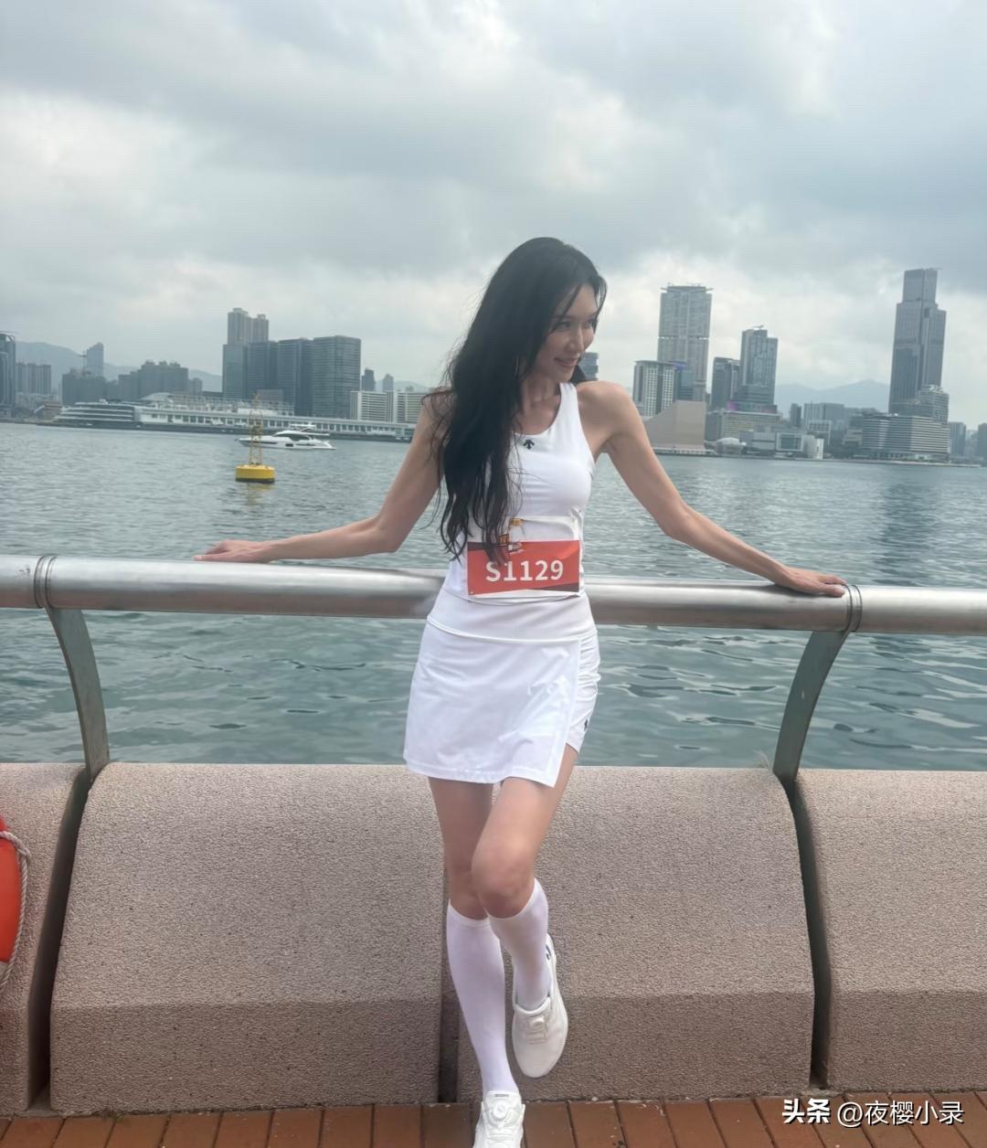 52岁林志玲在香港参加马拉松赛跑,她真人看起来好瘦,显得头很大,苍老感还挺重的。