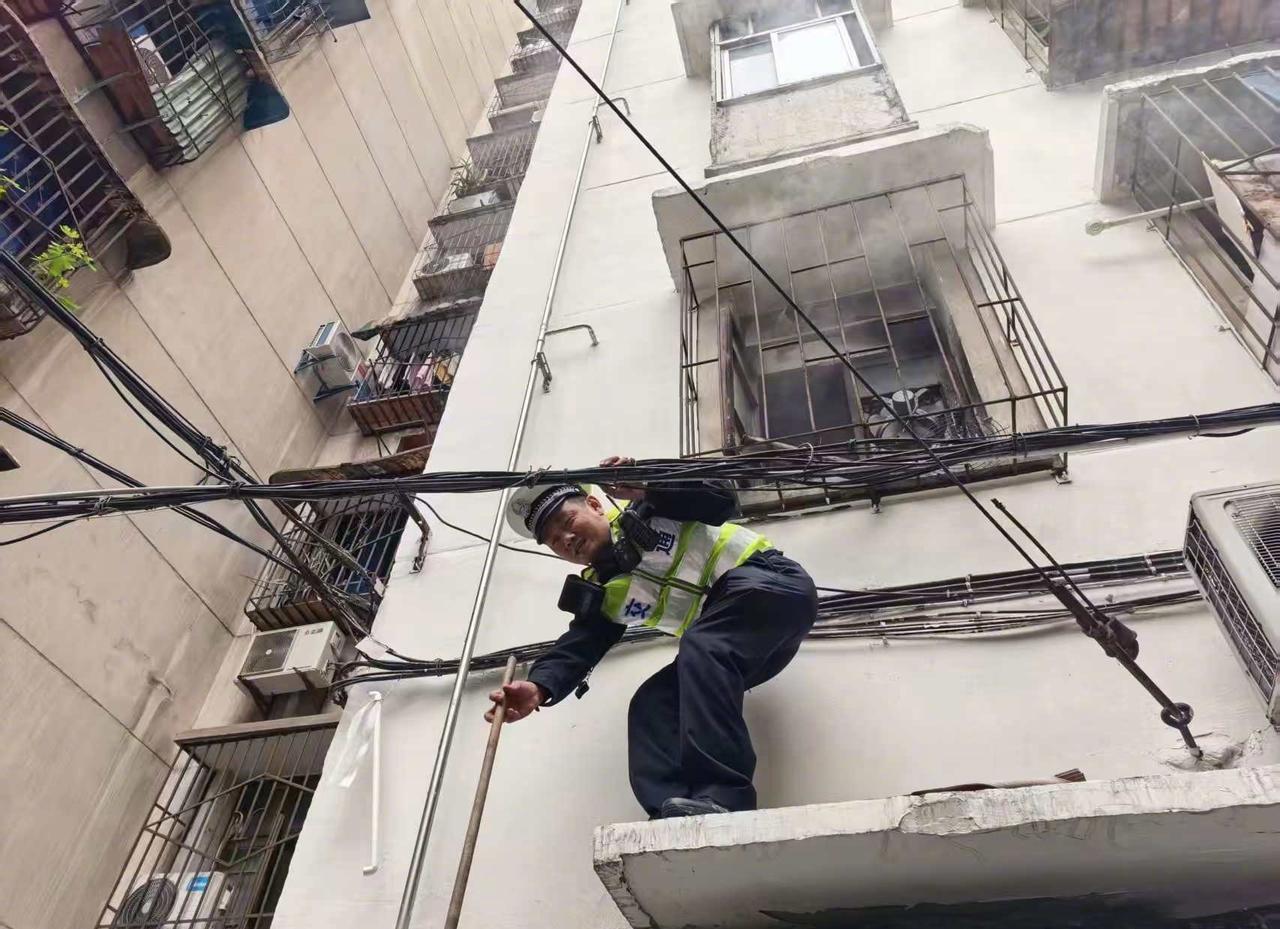 【重庆一辅警徒手爬楼灭火】居民厨房冒烟辅警徒手爬楼灭火