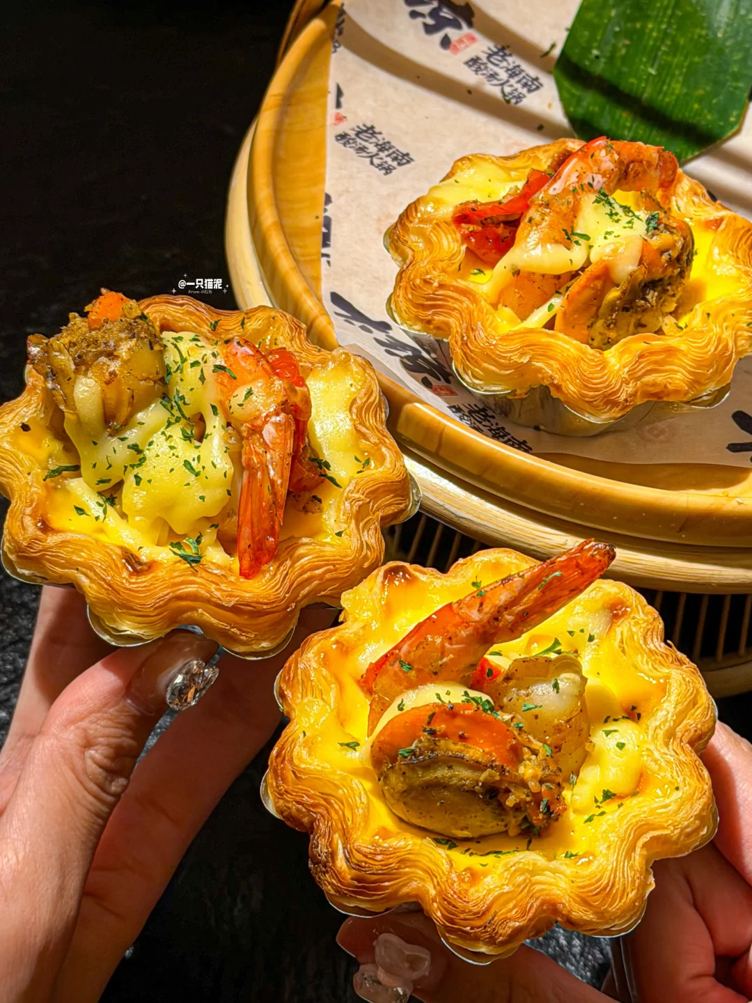 爆浆小海鲜蛋挞🥧,咸甜永动机,馅料多到溢出来。
