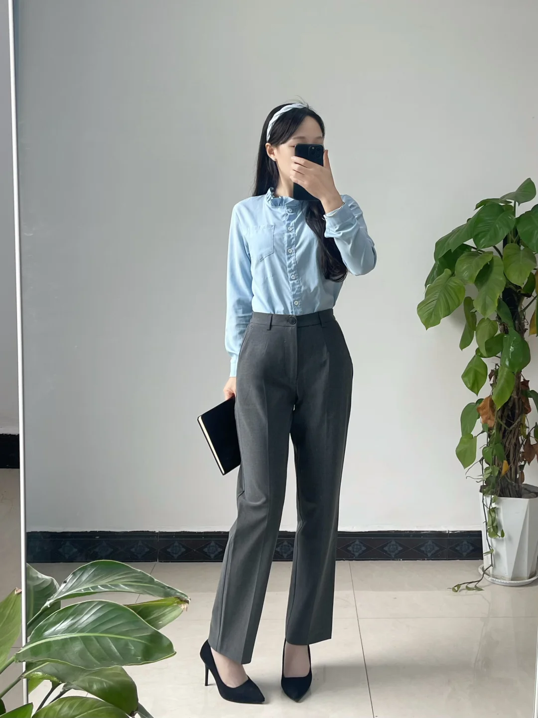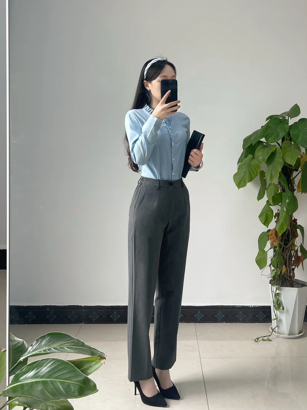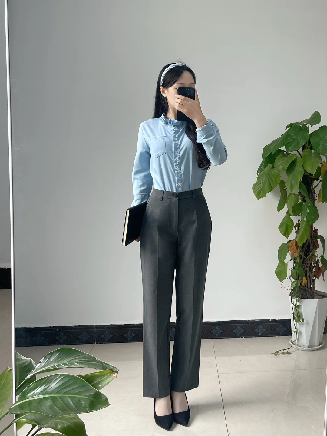 体制内穿搭|蓝色衬衫和灰色裤的高级感