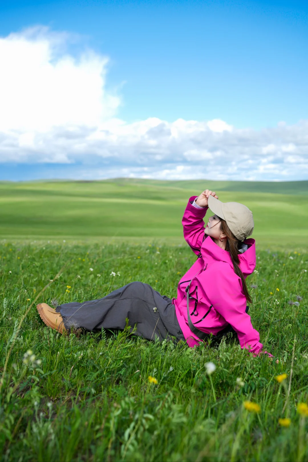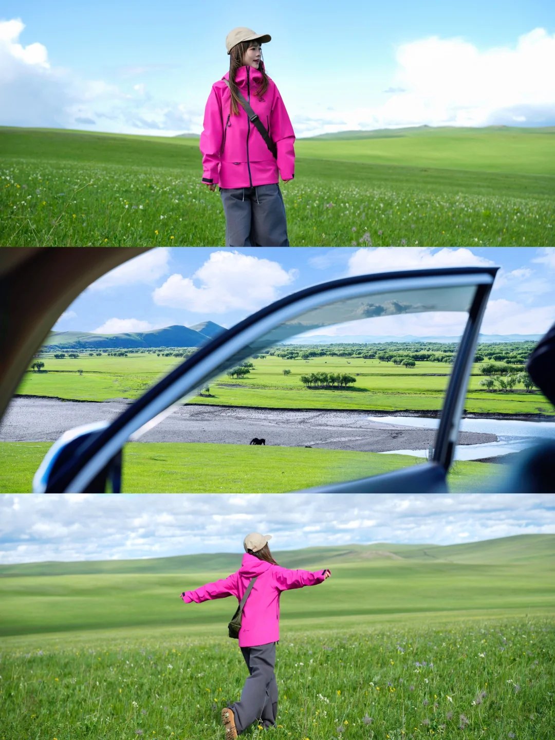 这次我在我的户外衣橱伯希和里面选的玫粉色山壳冲锋衣🧥,在草原真的超级出片,被同行的人问了好几次链接,拍照太好看了