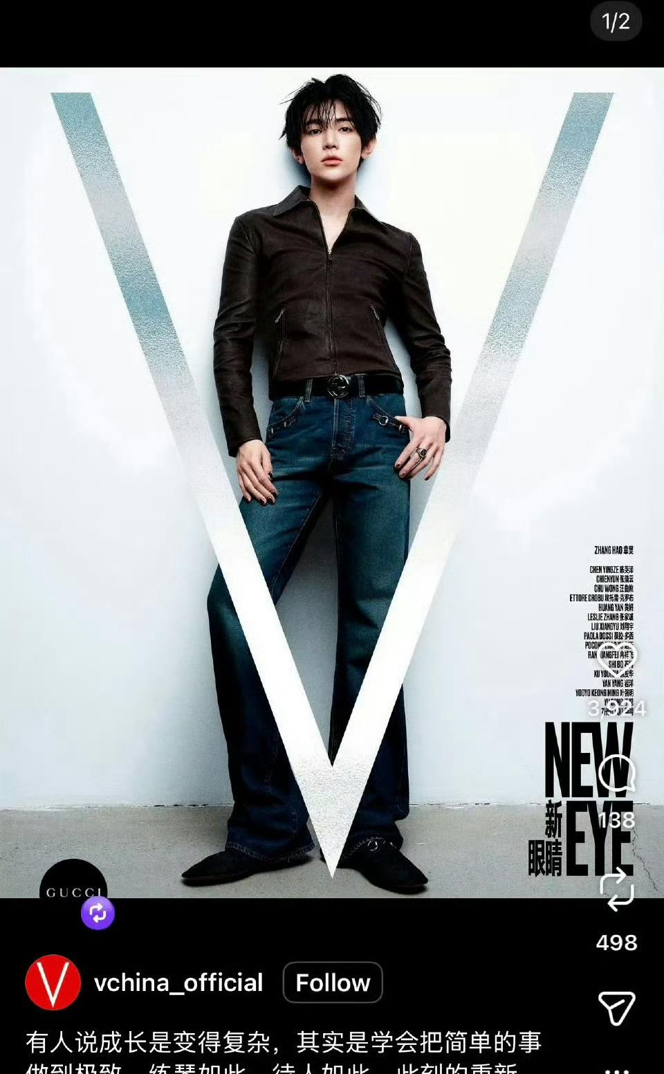 章昊|V中文版封面的超高含金量,来自GUCCI官方外网的认领,GUUCI BOY的排面拉满[haha]