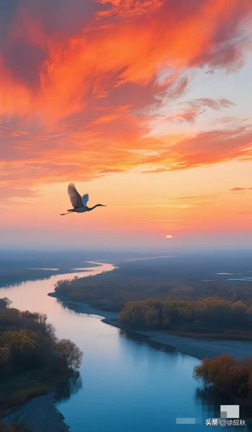 夕阳西下浮碧水 残霞曳影吻寒潭