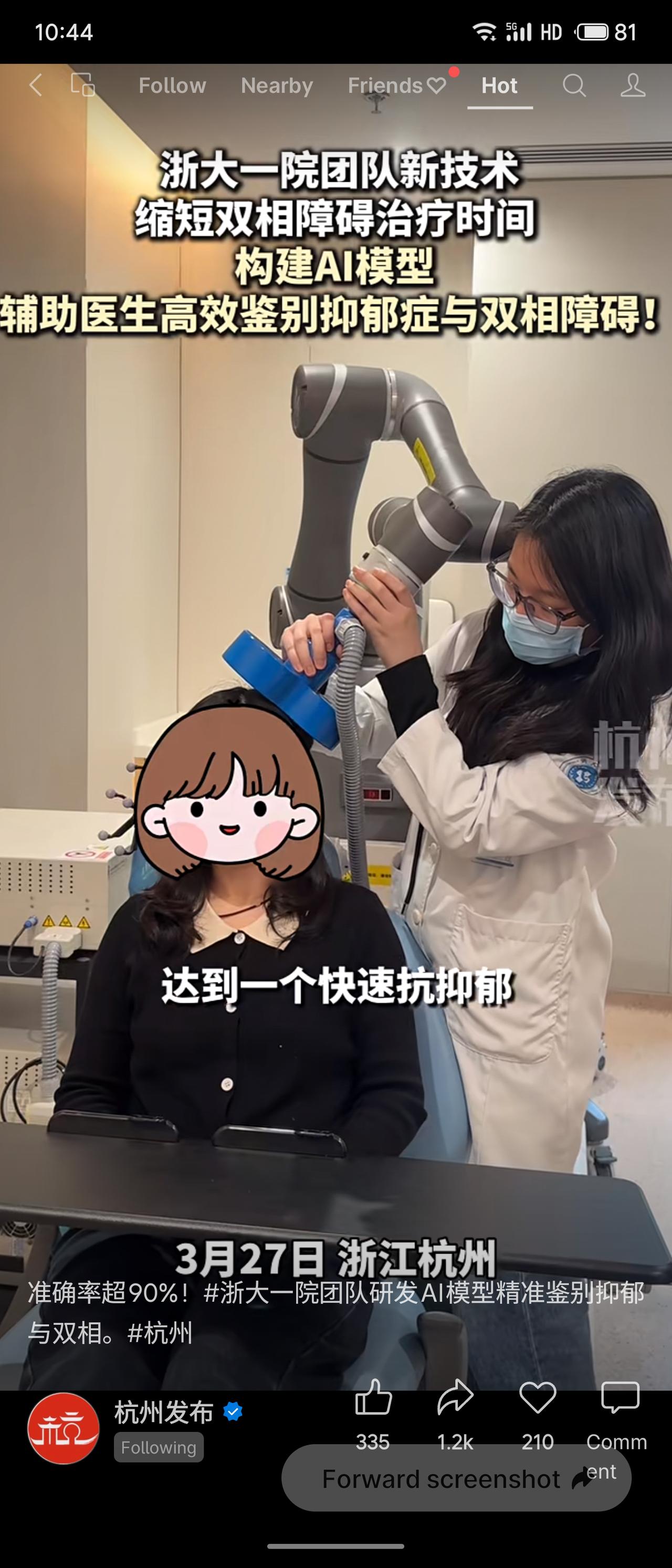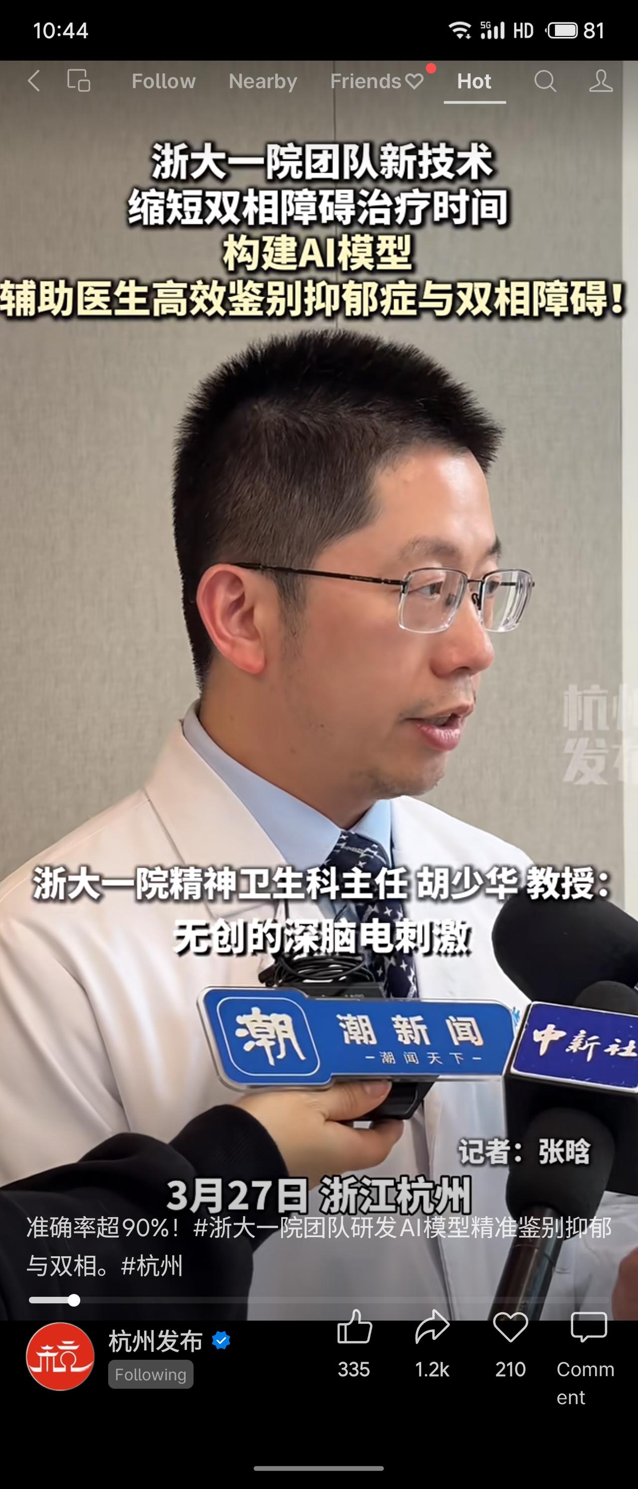 浙大一院团队研发AI模型,辅助医生高效鉴别抑郁症与双相障碍,准确率超90%。该技