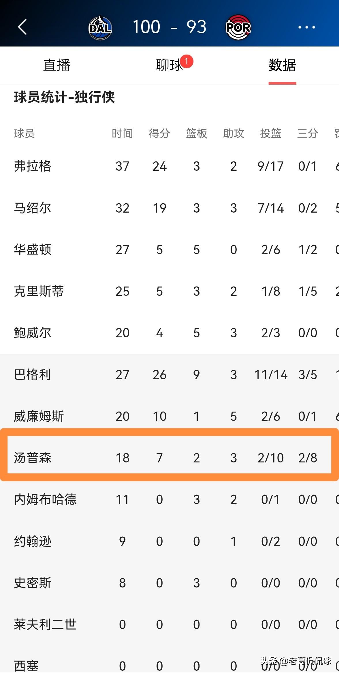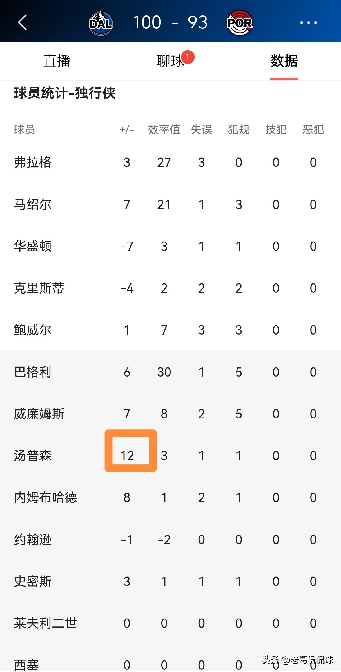 独行侠球星汤普森真是太让人费解了!在今天独行侠客场以100:93击败开拓者的比赛中,汤普森在进攻端的表现非常的糟糕,然而让人感到费解的是,汤普森的场上正负值却是全队最高的+12,如此奇怪的现象真是让我百思不得其解。