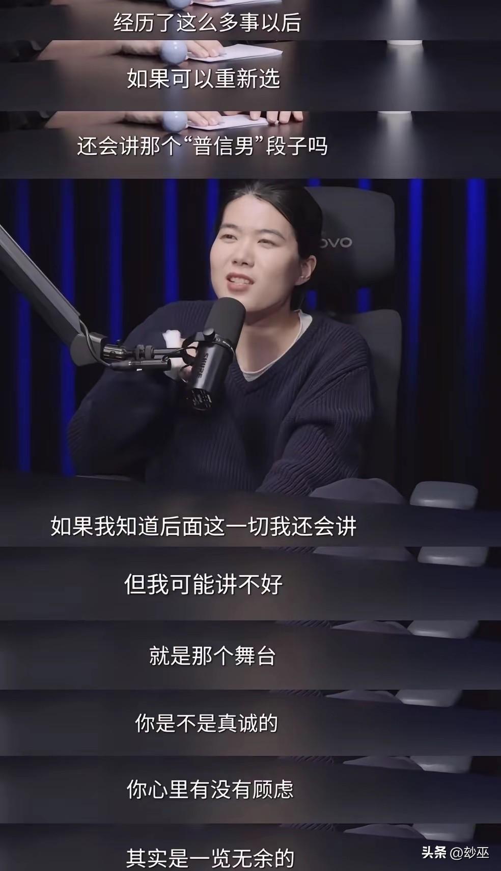 问题就出在,杨笠没表现好。杨笠这次表达还是狡辩的思路,观众不买账。她说如果她事前知道她的“普信男”言论会引发争议,但她还是会说。其实,杨笠如果借这次机会,想办法把话圆一下,说不定真能扳回局面,但或许受限于她觉悟的问题,她没抓住这次机会。