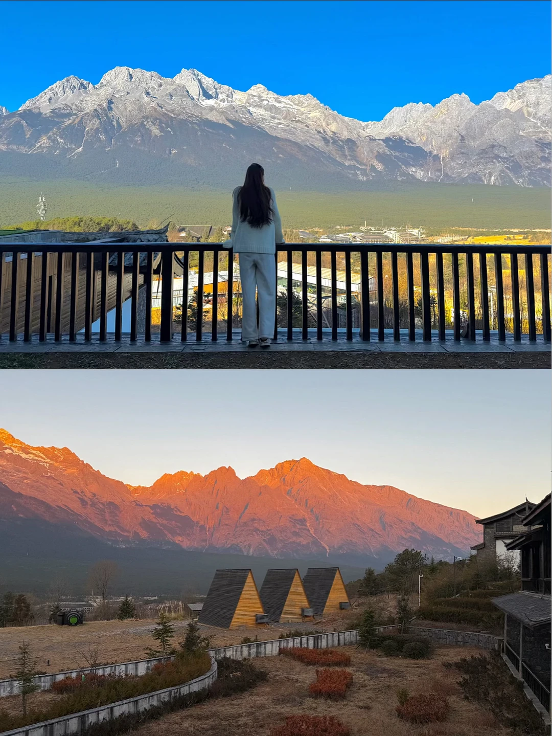 玉龙雪山内wei一的奢华酒店🏨适合懒人躺着看日照金山可以幸运一整年,每一扇窗每个角落几乎可以360欣赏雪山美景,还有10多种免费项目体验,价格超值