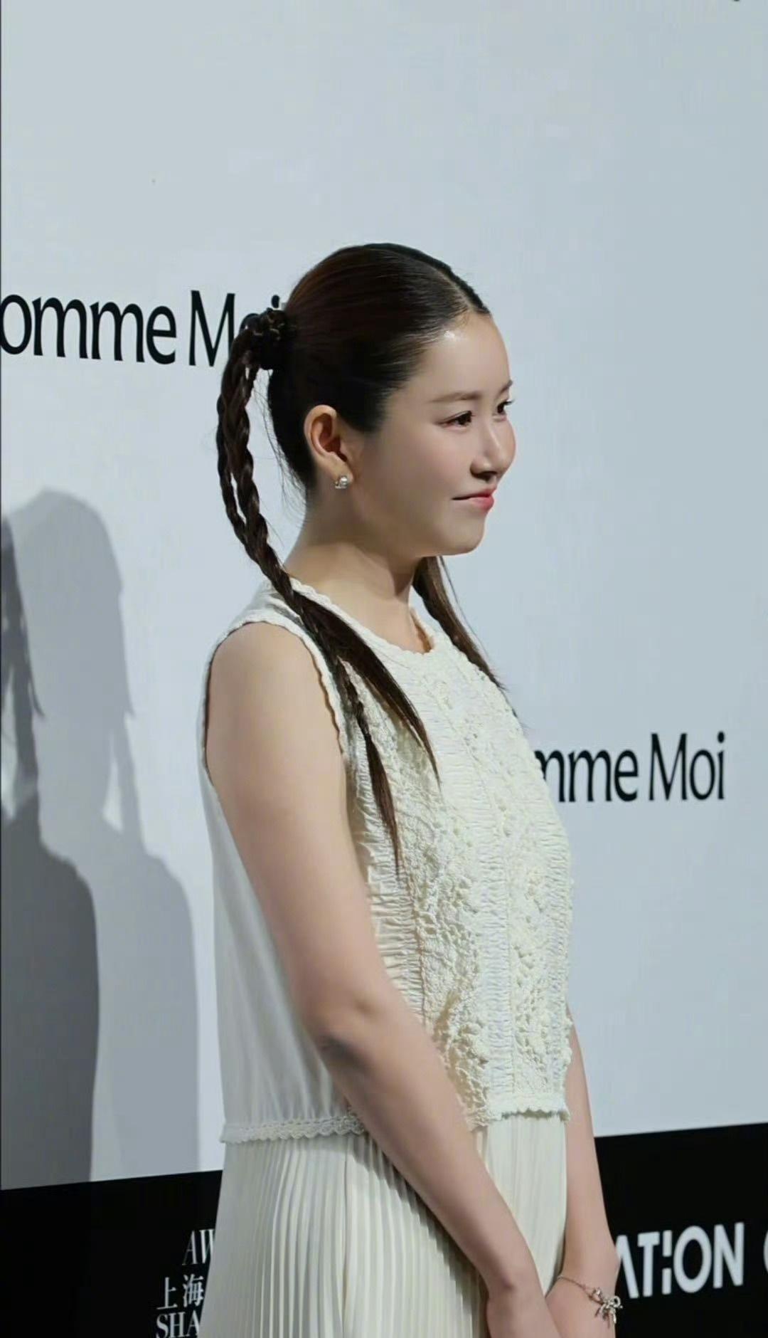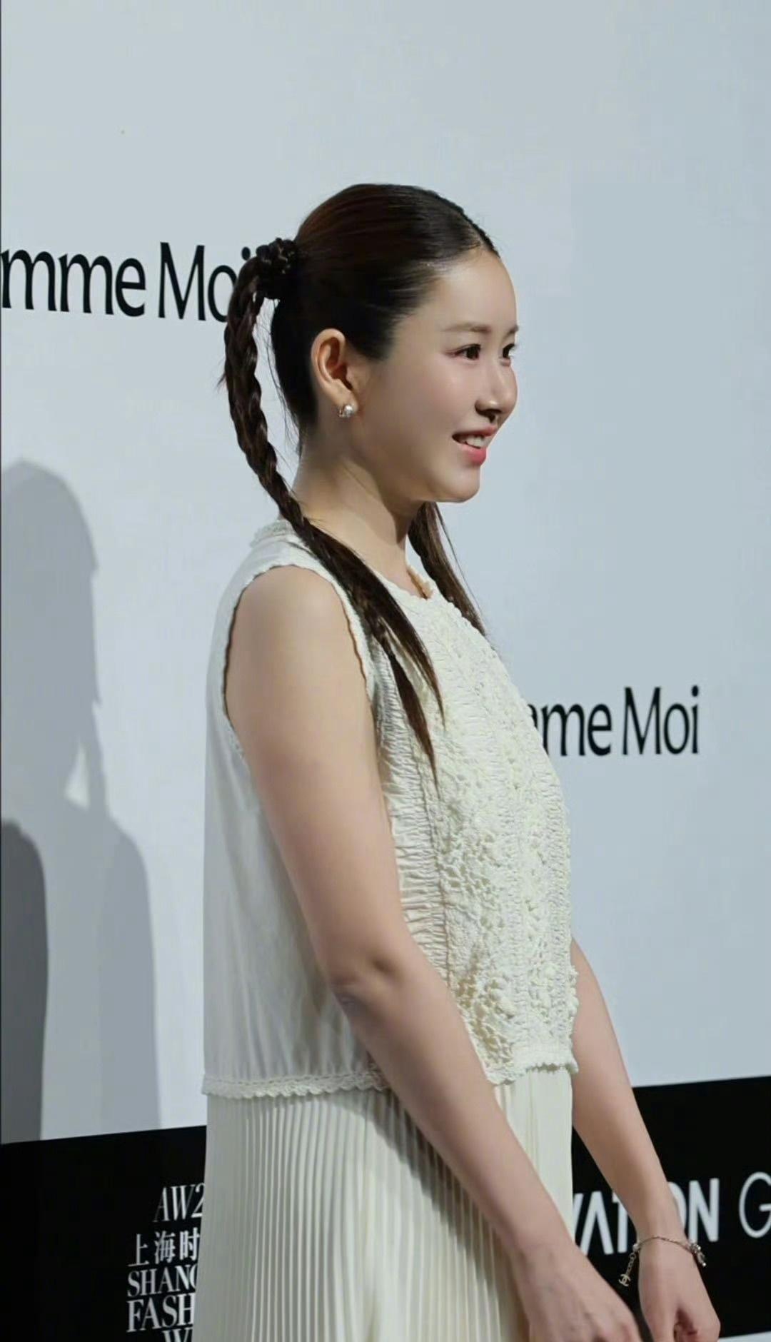 42岁张子萱亮相吕燕大秀,纯白连衣裙配四条麻花辫,好有灵气的一套look吕燕大秀
