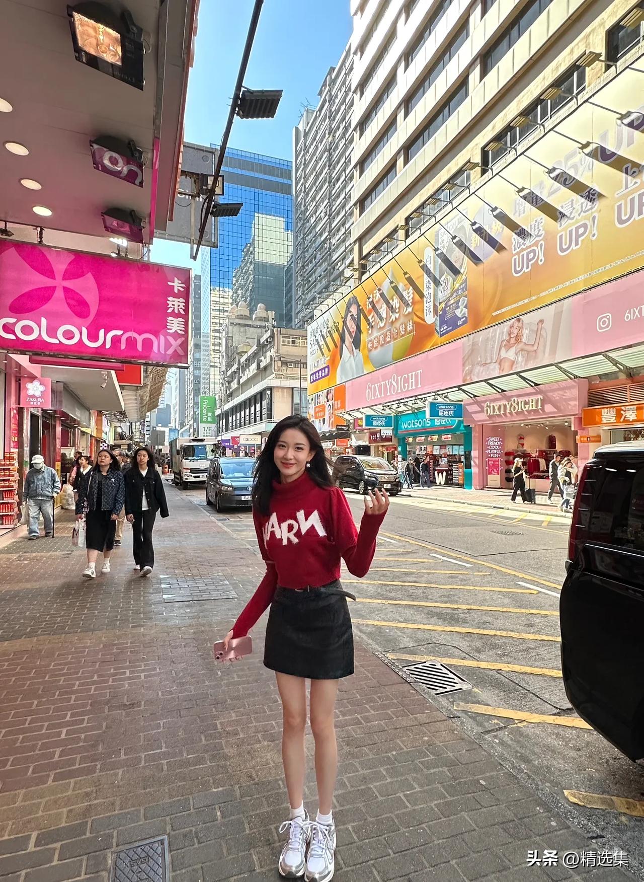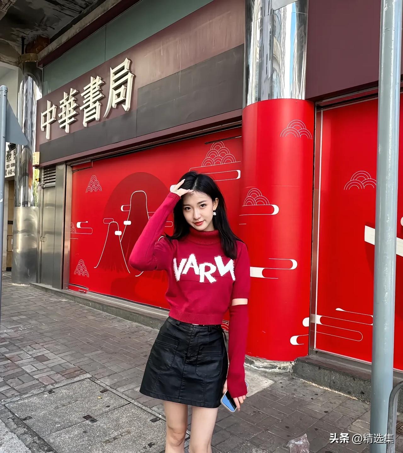 红色毛衣搭配黑色短裙,元气满满的一天!🌞👗👠