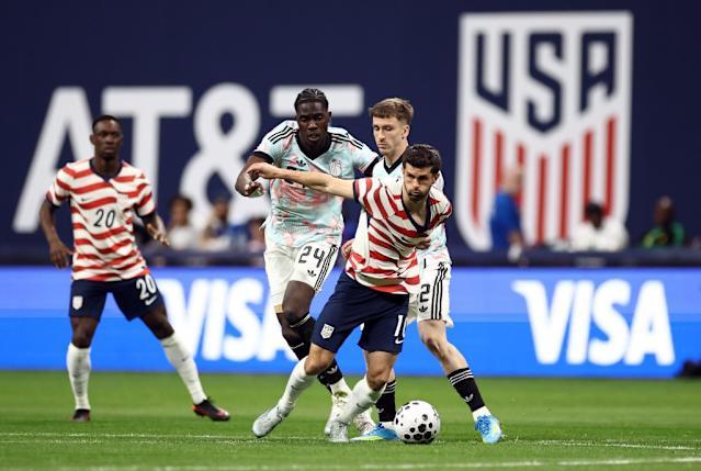 美国2比5比利时 俩人穿上不同颜色的球衣,猛地一看还有点不太习惯