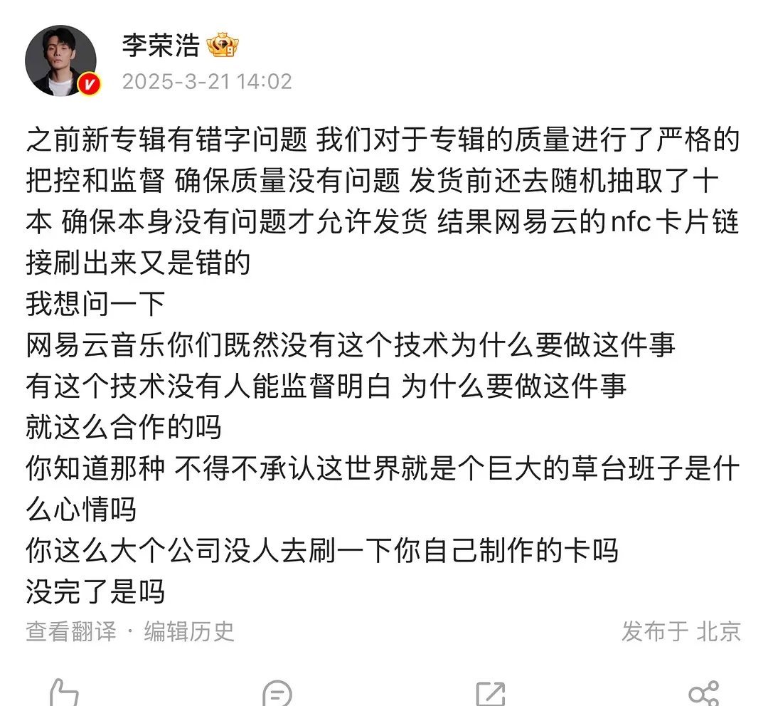 李荣浩吐槽博咋都这么有意思