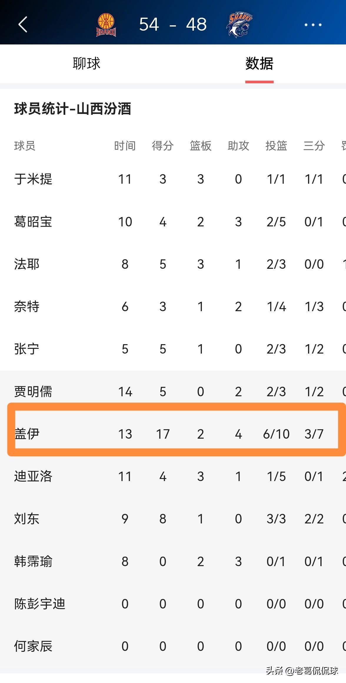 毫不夸张的说,如果不是因为盖伊在上半场比赛中的爆发,我相信山西汾酒肯定会在前两节比赛结束时处于落后。
