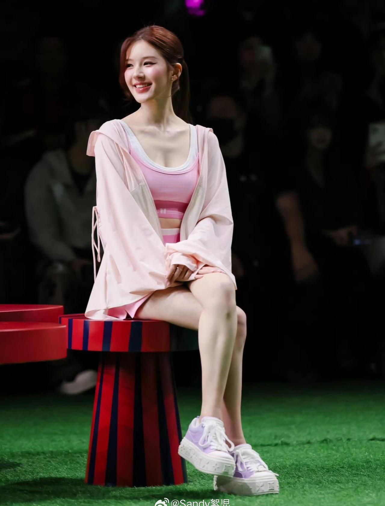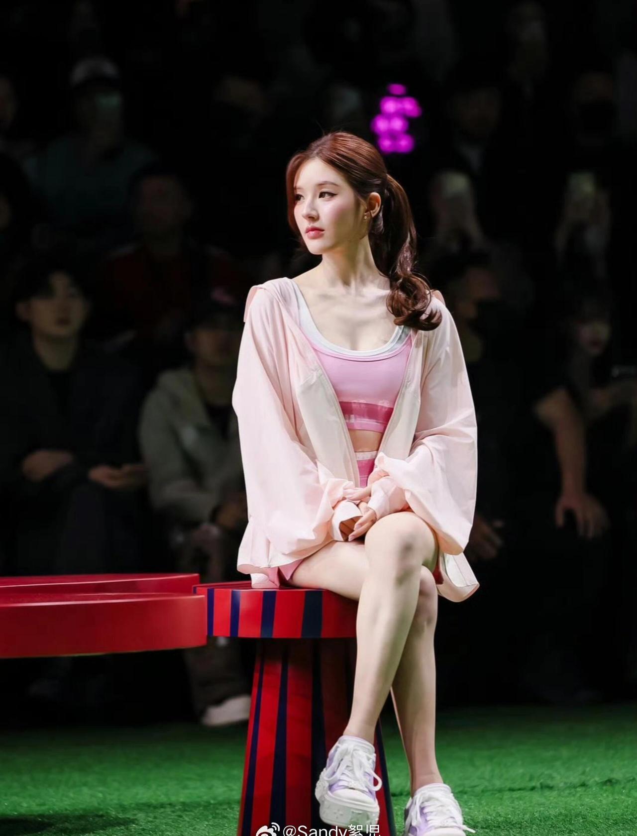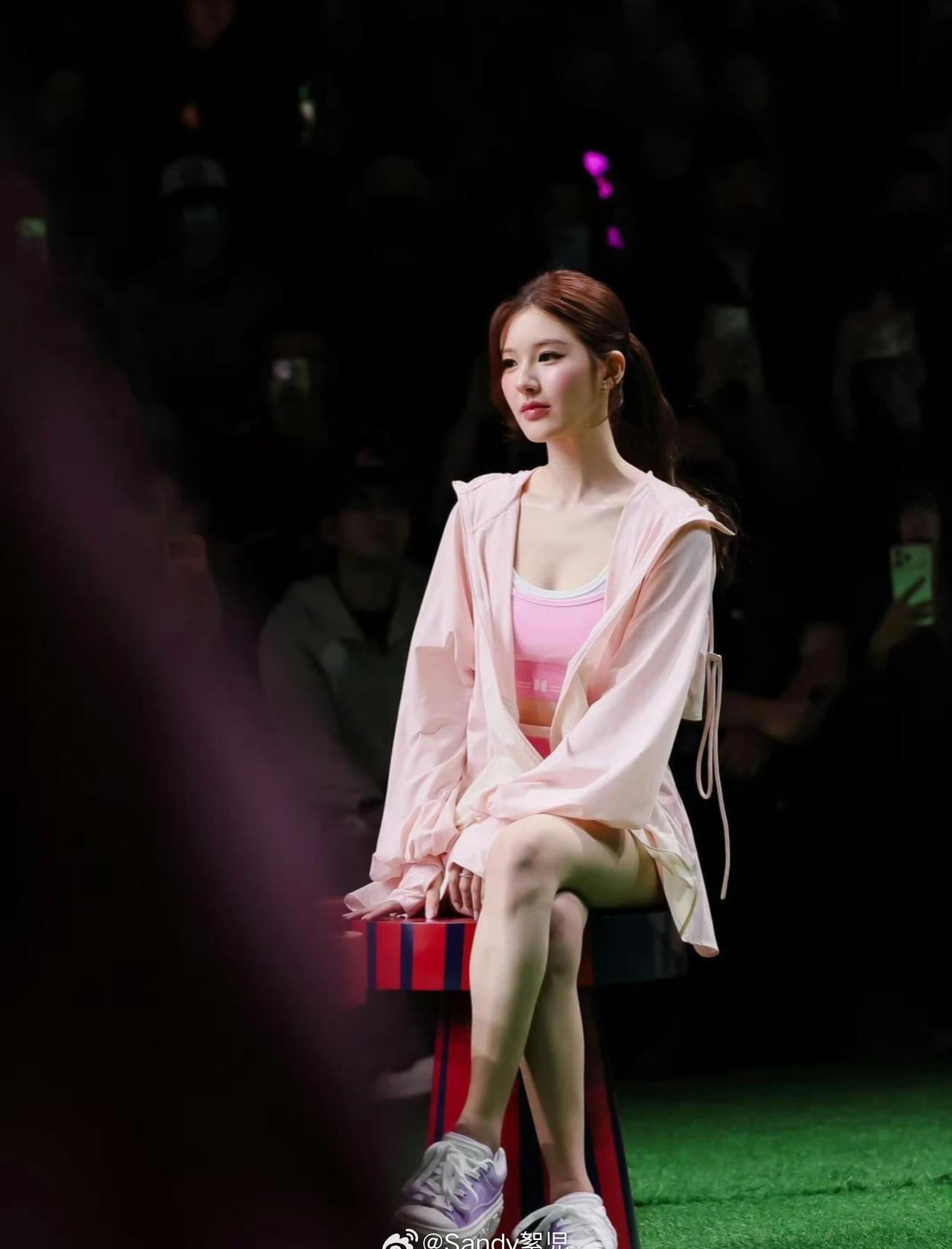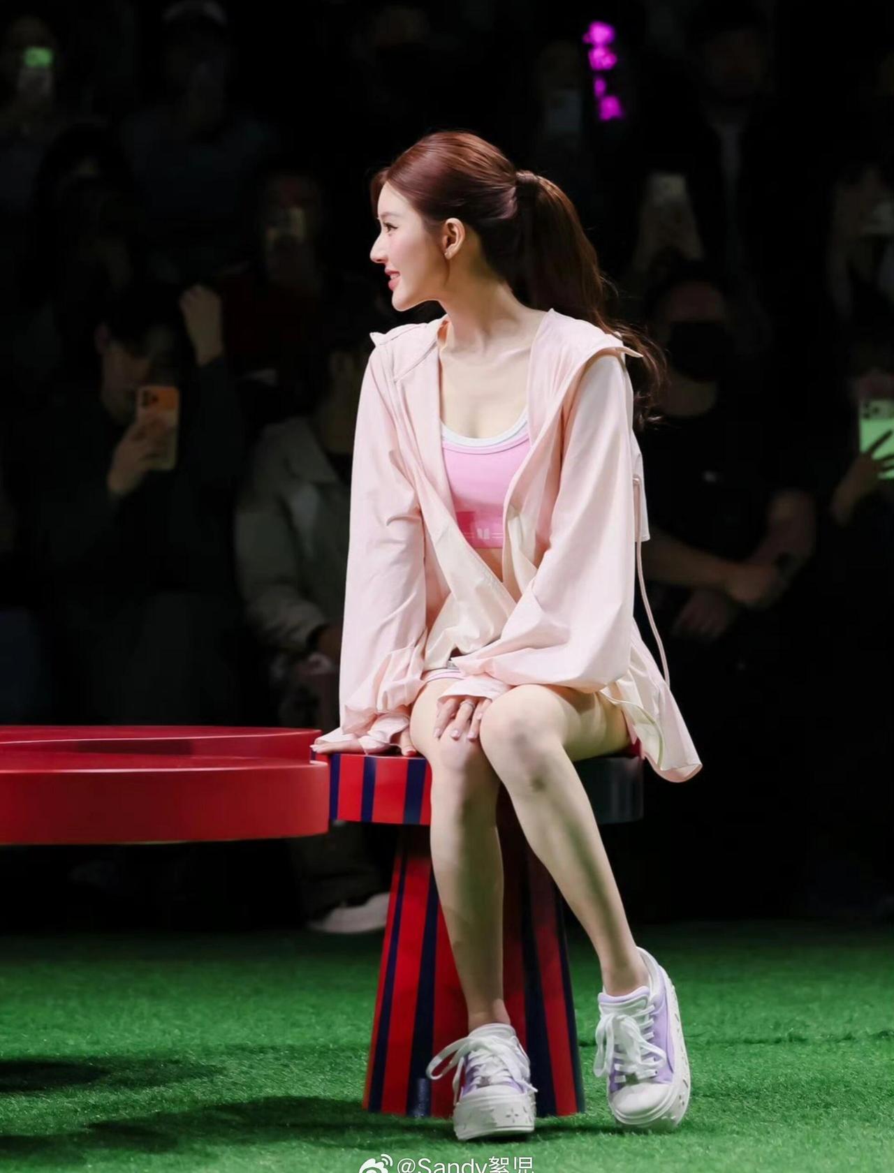 赵露思亮相上海时装周,一身粉色运动套装看秀,甜美运动系女孩~今天状态不错哦!乖乖