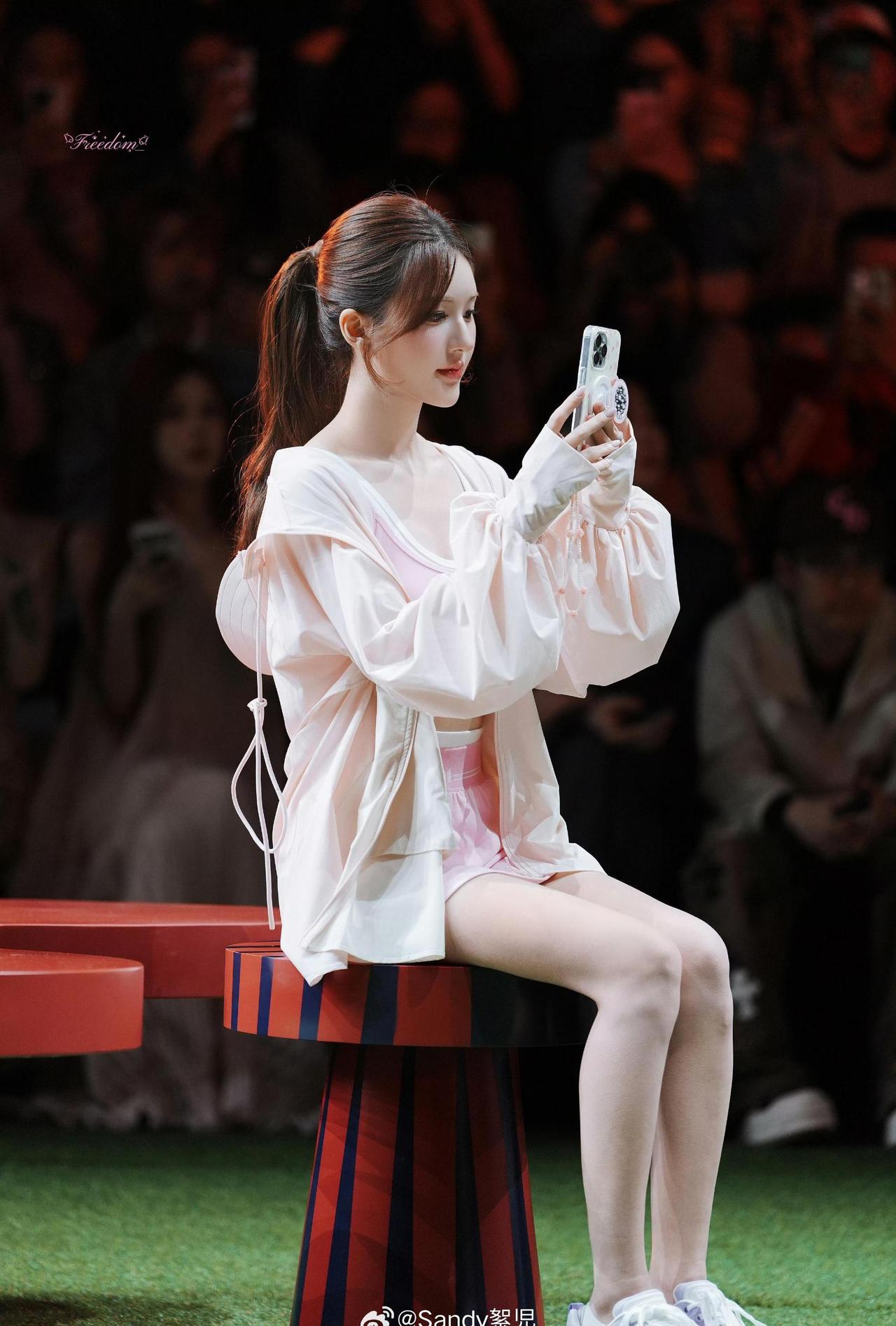 赵露思亮相上海时装周,一身粉色运动套装看秀,甜美运动系女孩~今天状态不错哦!乖乖坐着看秀中~~时装周上海时装周大秀直击