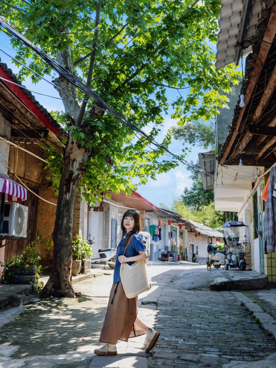 夏天,大树,光影,坐下休息,一副岁月静好的感觉,人迹稀少。午后阳光下的斑驳街道,顿时一股浓浓的80年代气息包裹而来,仿佛梦回童年。