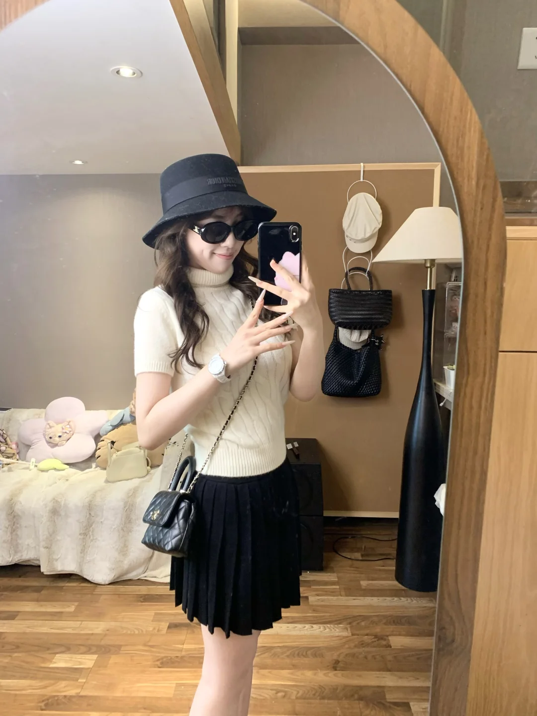 慵懒感穿搭 蘑糯糯 蘑糯糯新品 百褶裙搭配 百褶裙这么搭 针织衫穿搭 白色毛衣 温温柔柔随性穿搭 韩系穿搭 小香风