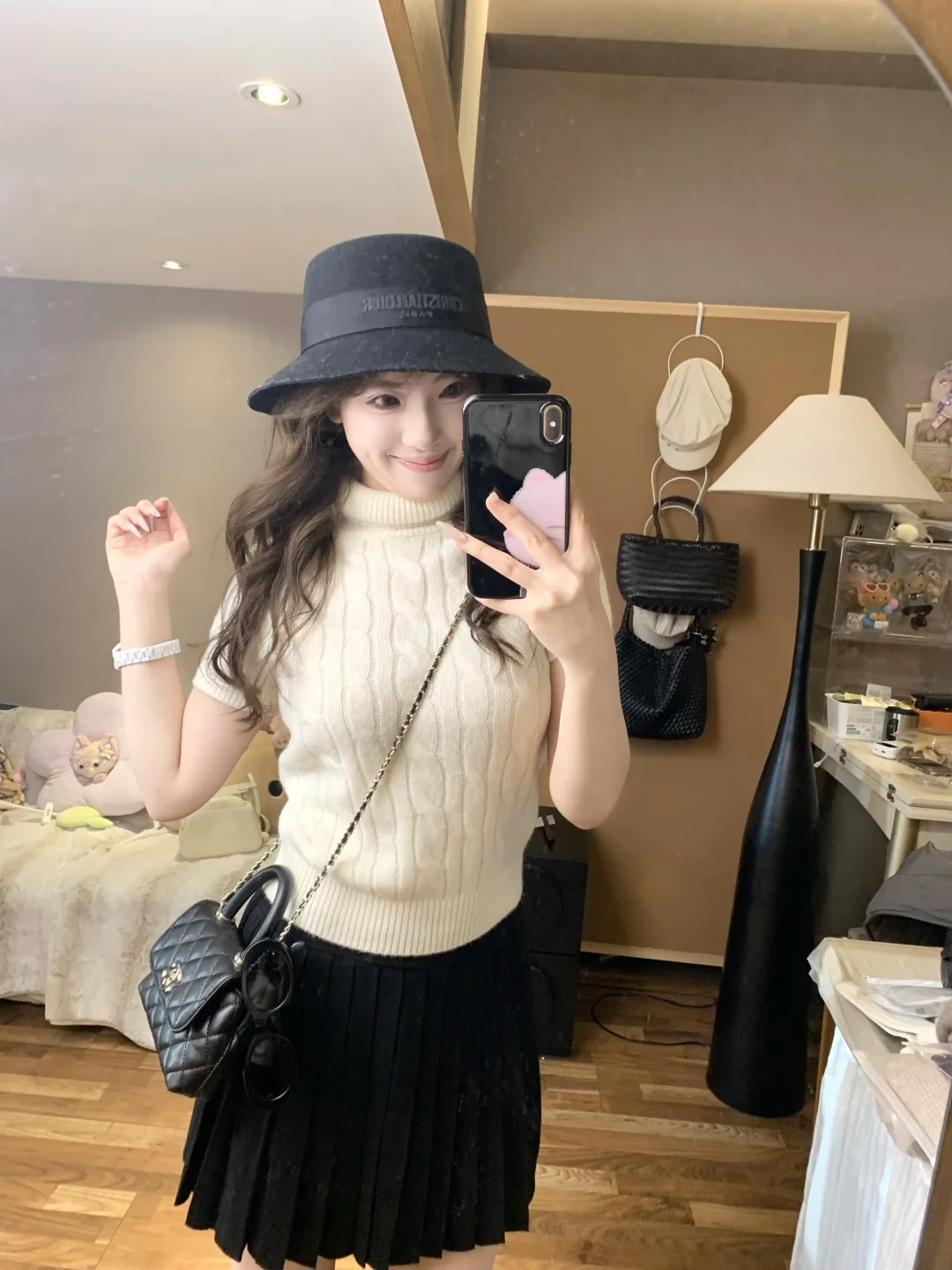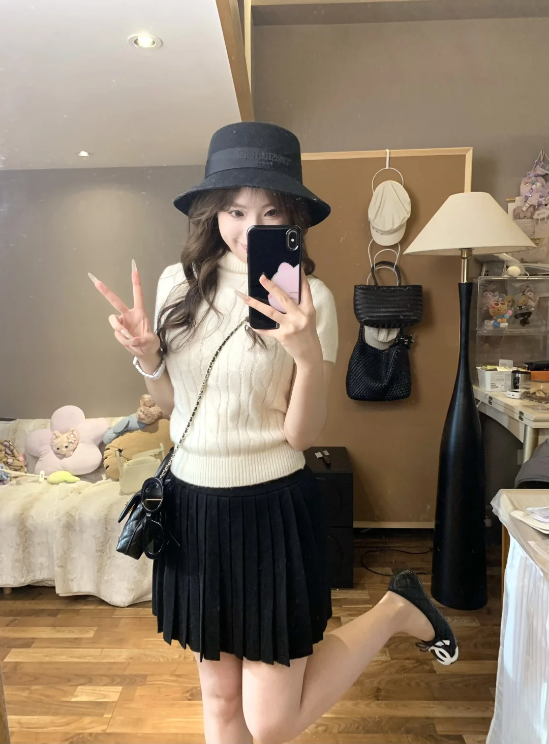 蘑糯糯新品试穿|奶白针织➕百褶裙
