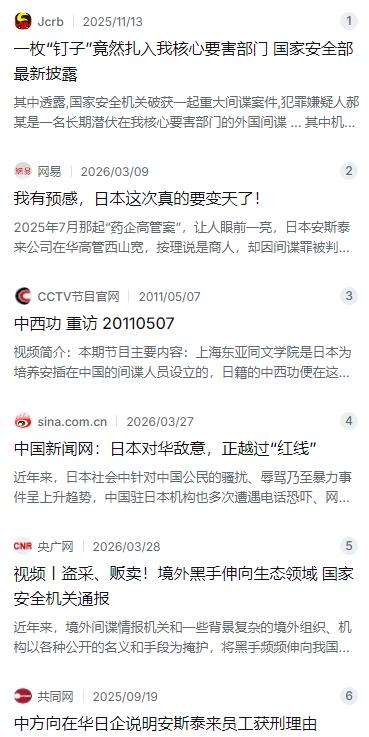 日本不怕中国有导弹,也不怕中国的核武器,甚至不怕中国的稀土制裁,他们害怕就是派往中国的间谍被中国连根拔起。很多人都纳闷,中国有能覆盖日本全境的导弹,有威力十足的核武器,还能卡住日本军工的稀土命脉,可日本为啥总一副无所谓的样子,甚至还敢时不时挑衅我们?说白了,日本这所谓的“无所谓”全是装出来的!